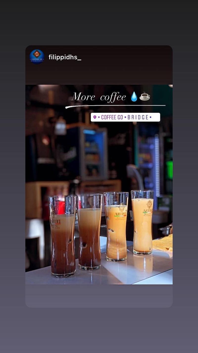 Για όσους πάλι μείνουν στην πόλη μπορούν να απολαύσουν στο «Coffee go Bridge» τον αγαπημένο τους καφέ η το ανθρακούχο νερό με πεπόνι κ λεμόνι, το κρύο τσάι με λίτσι, καρπούζι ρόδι, φράουλα, τα δροσερά smoothies , τα λαχταριστά milkshakes, τις μοναδικές κρύες σοκολάτες Lila pause , λευκή , bitter ,ferrero αλλά και τις σουρωτές με γεύσεις