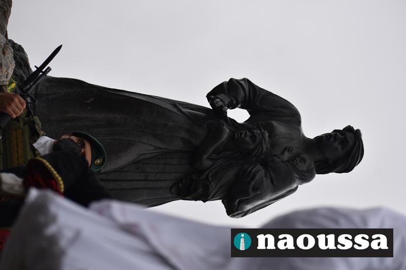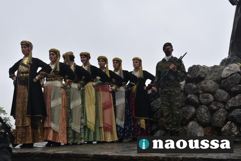 Την Εκφώνηση του Πανηγυρικού της Ημέρας έκανε ο Σεβασμιώτατος Μητροπολίτης Βεροίας, Ναούσης και Καμπανίας κ. Παντελεήμονας. Ακολούθησε η αναπαράσταση της θυσίας των Ναουσαίων Ηρωίδων γυναικών