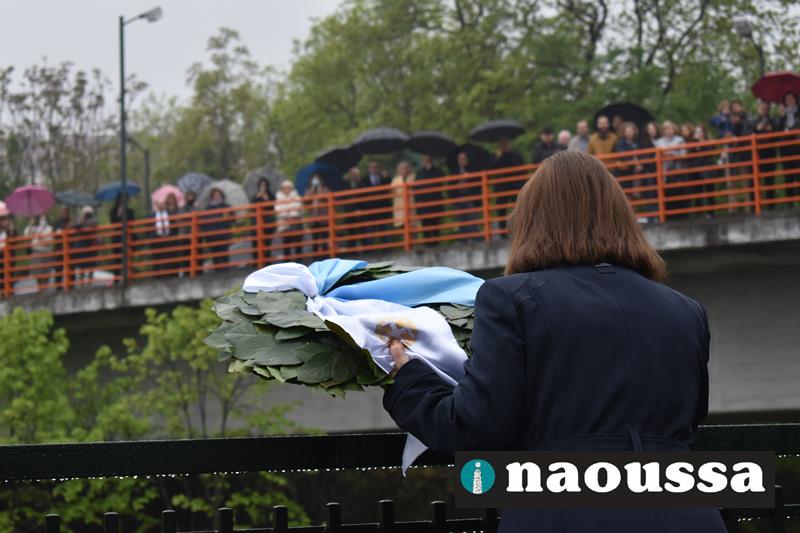 Με Επιμνημόσυνη δέηση και ρίψη στεφάνου στον ποταμό της Αράπιτσας από την Α.Ε. Πρόεδρο της Δημοκρατίας Κατερίνα Σακελλαροπούλου τιμήθηκε η μνήμη του Ολοκαυτώματος στον Χώρο Θυσίας στη Νάουσα.