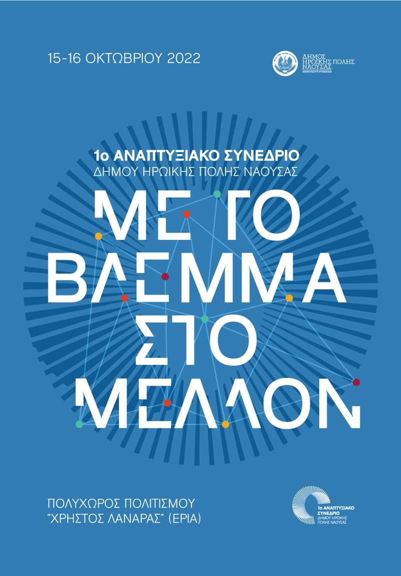 Ο Δήμος Ηρωικής Πόλης Νάουσας διοργανώνει στις 15 και 16 Οκτωβρίου, στη Νάουσα, το 1ο Αναπτυξιακό Συνέδριο με τίτλο «Με το βλέμμα στο μέλλον» (Κέντρο Βιομηχανικής Κληρονομιάς – ΕΡΙΑ).