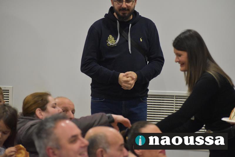 Χαιρετισμό στην εκδήλωση έκανε ο δήμαρχος Νάουσας κ. Νικόλας Καρανικόλας που παράλληλα έκοψε την πίτα του Ομίλου με το φλουρί να βρίσκεται στο κομμάτι του πολιτισμού.