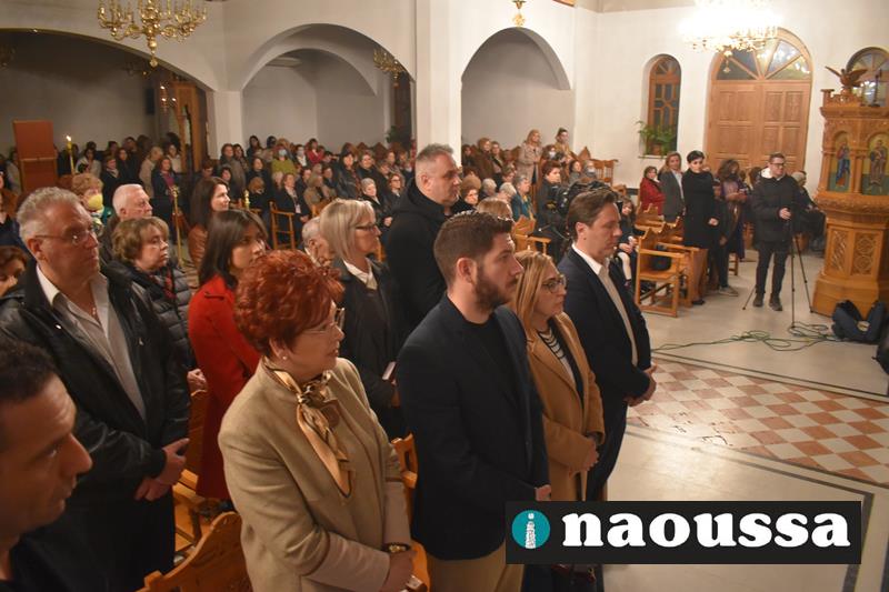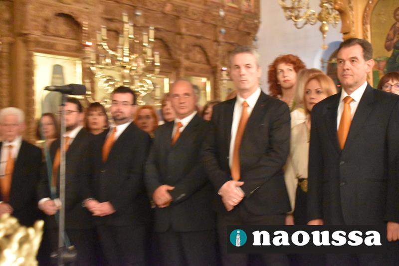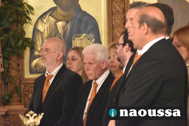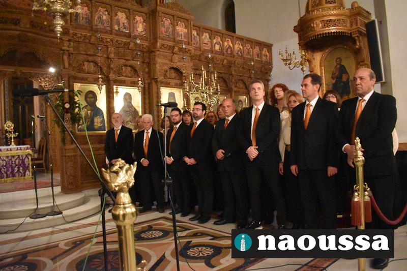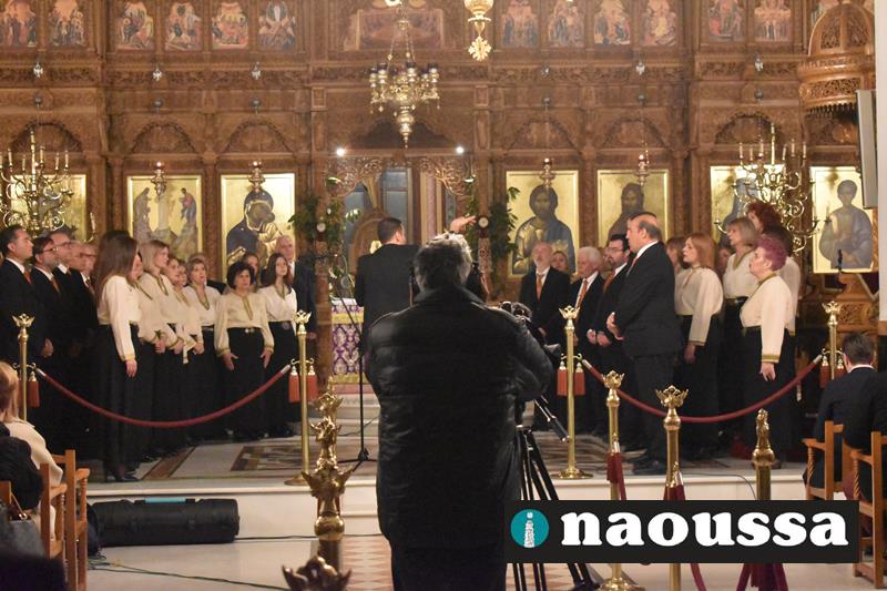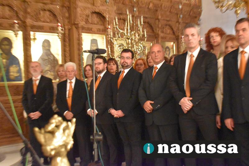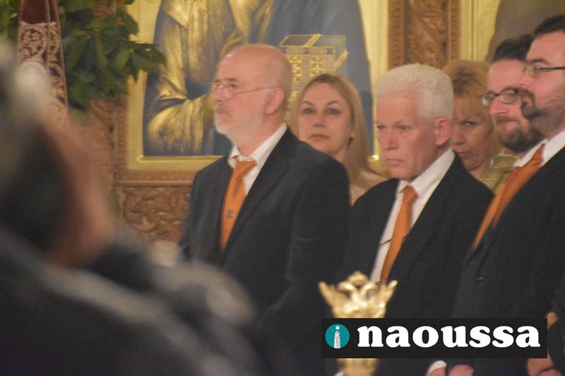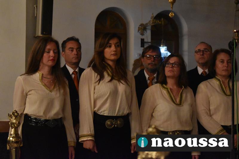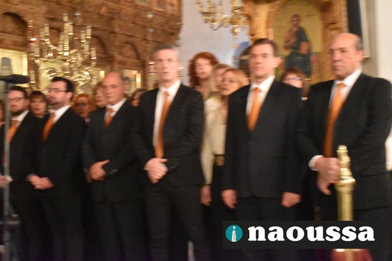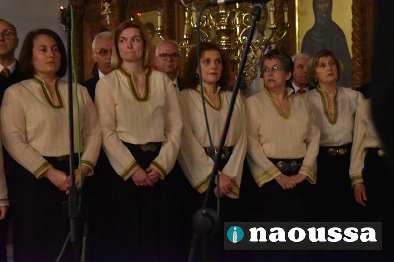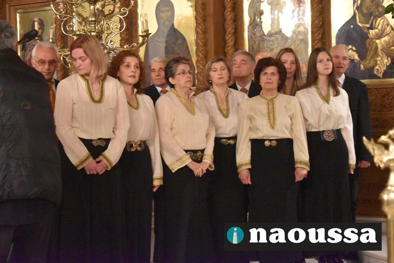 Συνεχίζοντας την παράδοση δεκαετιών, η χορωδία του Μουσικού Σωματείου «ΩΔΕΙΟ ΝΑΟΥΣΗΣ» έψαλε το τροπάριο της Κασσιανής σε διασκευή για τετράφωνη μικτή χορωδία του μαέστρου Δημήτρη Παρόλα.