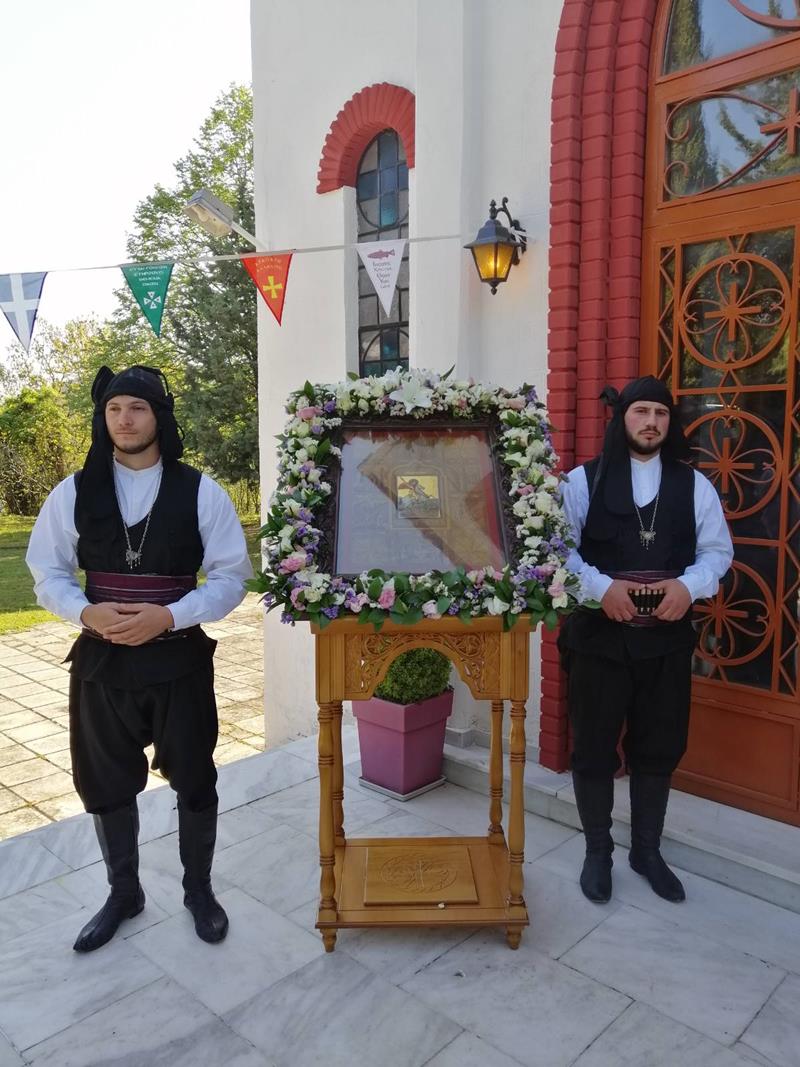 Ο εορτασμός, με την ευλογία του Σεβασμιωτάτου Μητροπολίτου Εδέσσης, Πέλλης και Αλμωπίας κ. Ιωήλ, ξεκίνησε από την παραμονή της εορτής του Αγίου Μεγαλομάρτυρος Γεωργίου του Τροπαιοφόρου, το απόγευμα στις 22 Απριλίου 2023, με τον στολισμό της θαυματουργής εικόνας, κειμήλιο από την παλαιά Μονή στον Πόντο και την μεταφορά της με θρησκευτική ευλάβεια στον Ιερό Ναό, όπου και τελέστηκε Εσπερινός με αρτοκλασία από τον Αρχιμανδρίτη Παντελεήμονα Καραλάζο και τον πατέρα Ειρηναίο Τσαλμά.