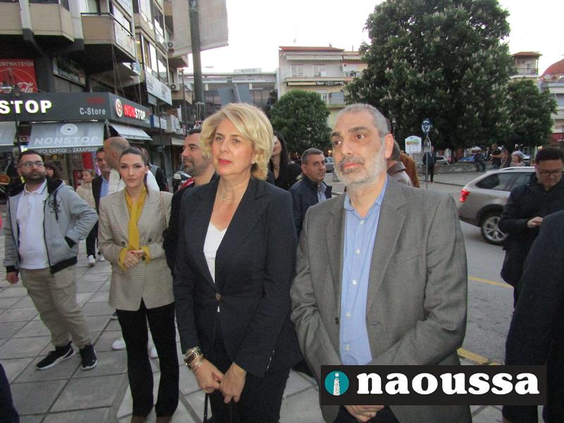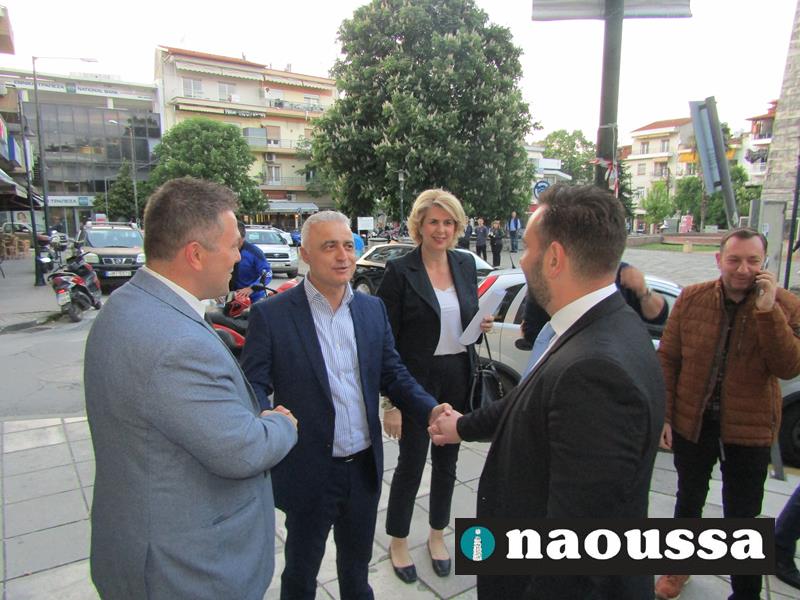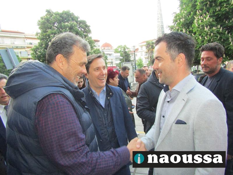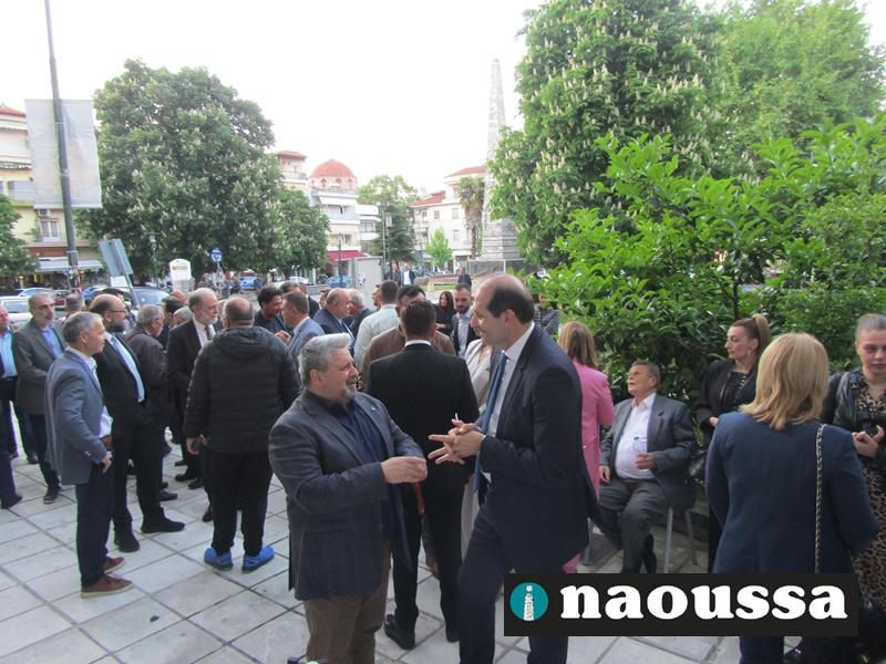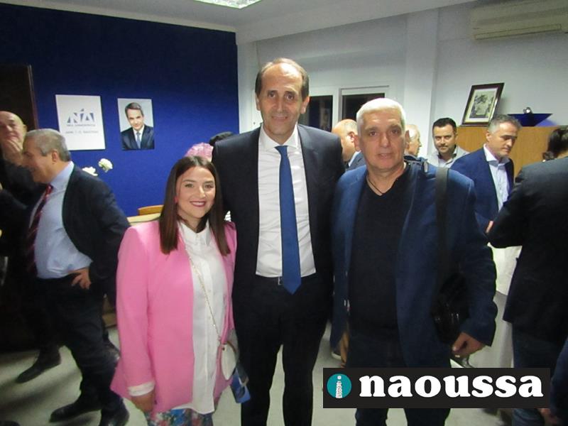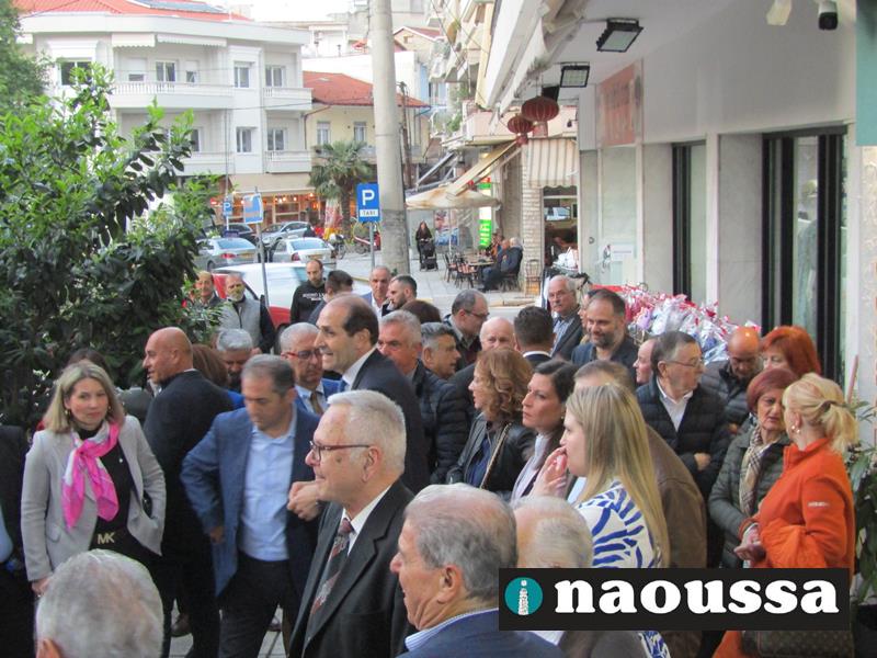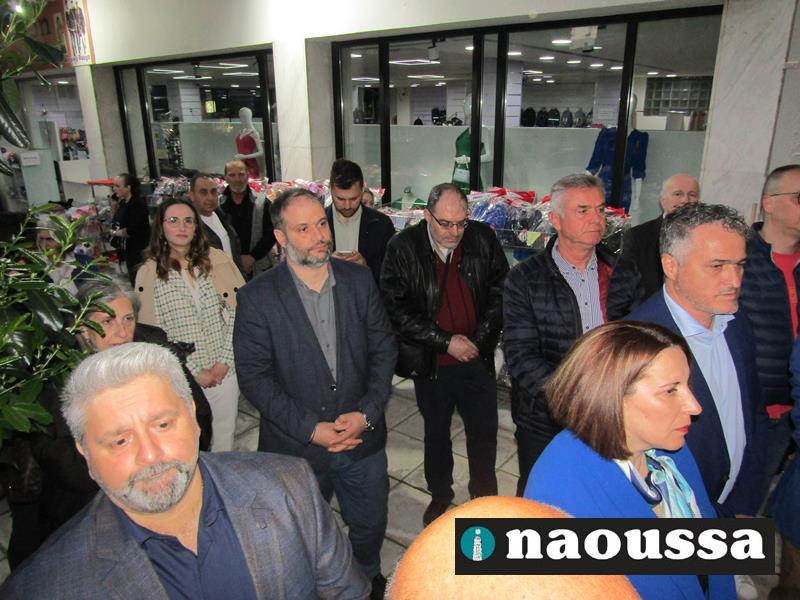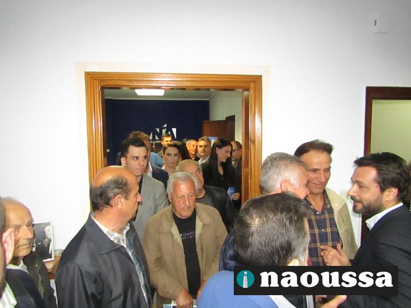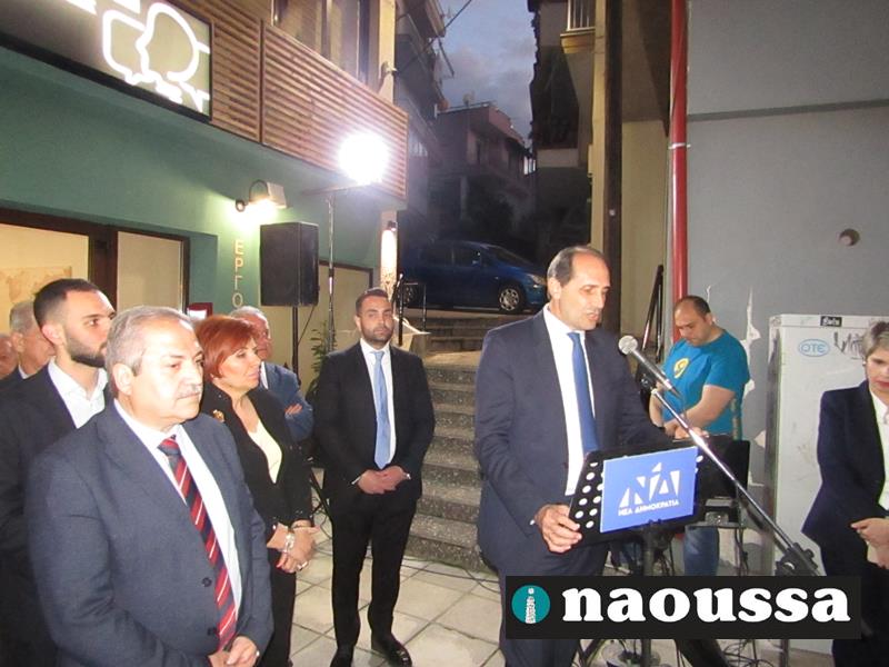 Χαιρετισμό απηύθυναν ο πρόεδρος της Διοικούσας Επιτροπής (Δ.Ε.Ε.Π.) Νέας Δημοκρατίας Ημαθίας κ. Σταύρος Γιανναβαρτζής, ο υφυπουργός οικονομικών κ. Απόστολος Βεσυρόπουλος, που έκοψε και την κορδέλα των εγκαινίων, καθώς και οι υποψήφιοι βουλευτές Στέλλα Αραμπατζή, Λάζαρος Τσαβδαρίδης, Τάσος Μπαρτζώκας και Γιώργος Γουλτίδης.