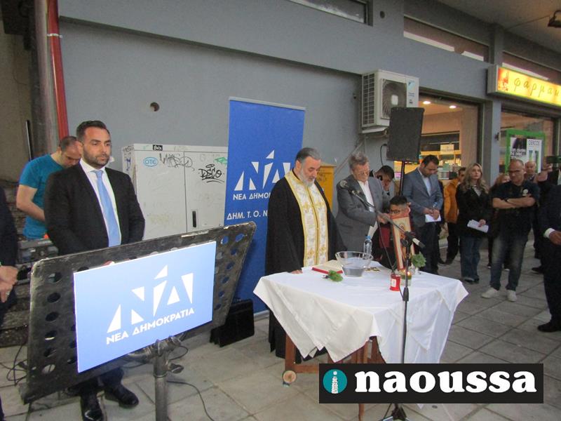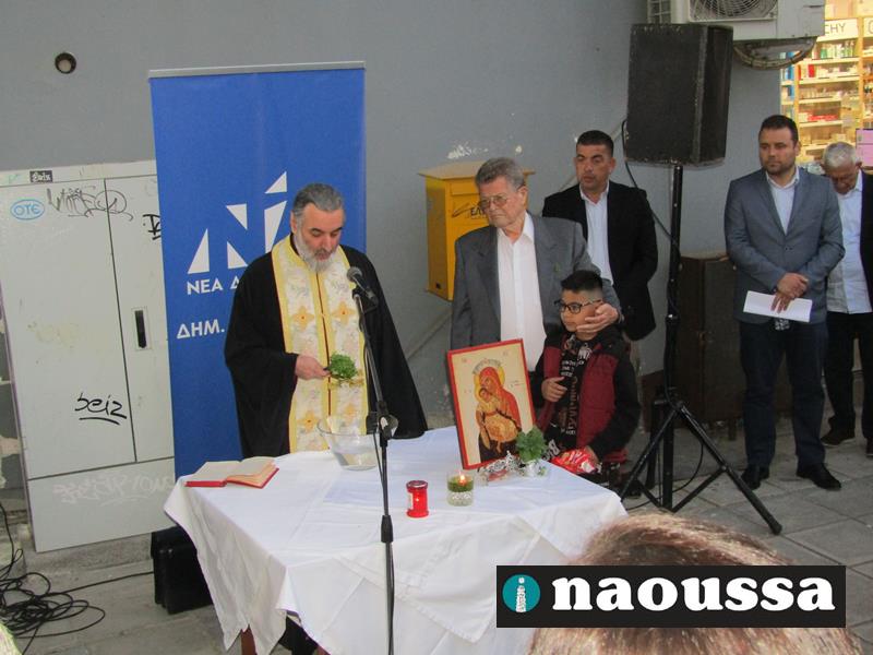 Πλήθος φίλων της Νέας Δημοκρατίας παρέστη στον αγιασμό, που τελέστηκε από τον αρχιερατικό επίτροπο Νάουσας πατέρα Ιωακείμ Δεσπότη.