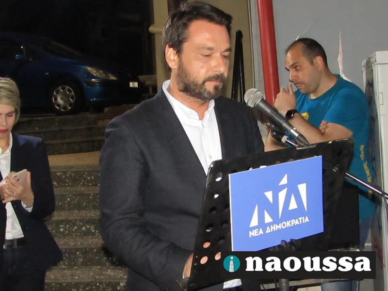 Τους παρευρισκόμενους καλωσόρισε ο πρόεδρος της ΔΗΜ.Τ.Ο. Νάουσας κ. Βαγγέλης Αδαμίδης, ο οποίος αναφέρθηκε στην προσπάθεια που καταβλήθηκε από μέλη και φίλους του κόμματος για την ολοκλήρωση των νέων γραφείων. Τους ευχαρίστησε, μάλιστα, για τη σημαντική συνεισφορά τους. Εξέφρασε, τέλος, την πεποίθησή του για τη νίκη της Νέας Δημοκρατίας στις εκλογές της 21ης Μαΐου.