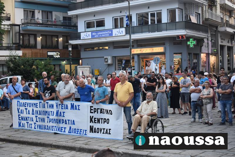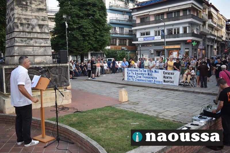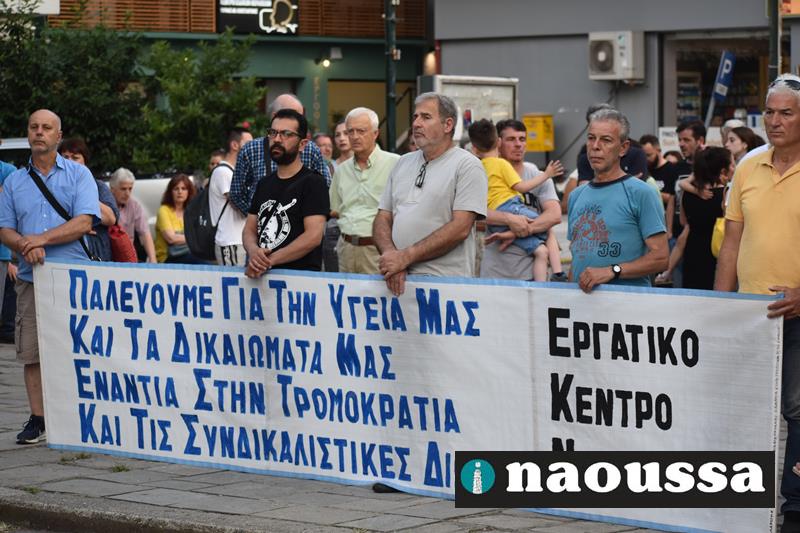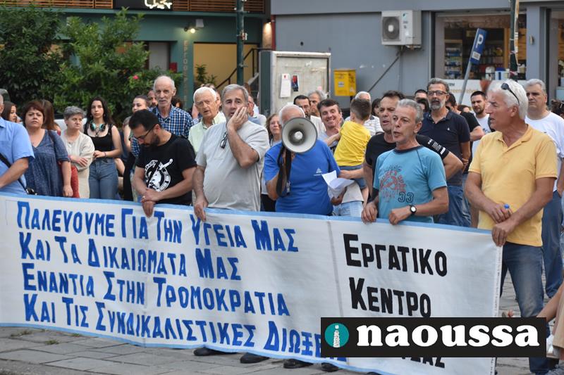 Με συλλαλητήριο συνεχίστηκαν οι αγωνιστικές κινητοποιήσεις των φορέων και των σωματείων της Νάουσας που στέκονται στο πλευρό της απολυμένης συνδικαλίστριας Χρυσάνθης.