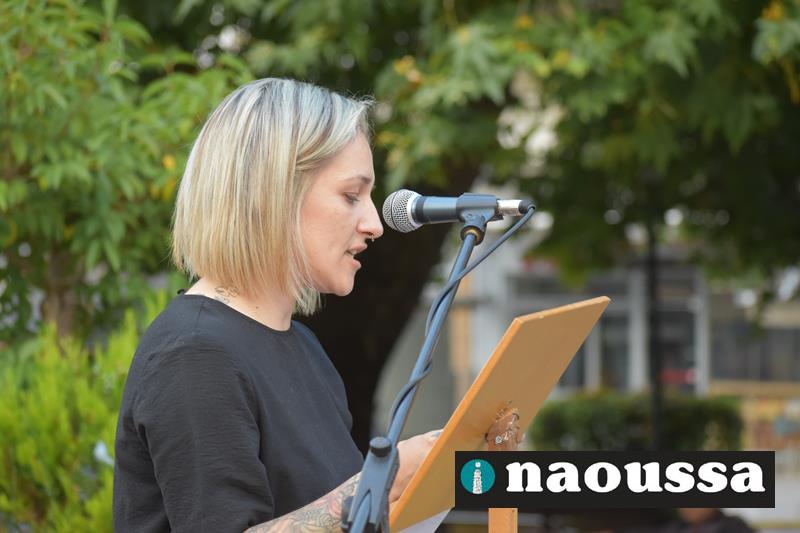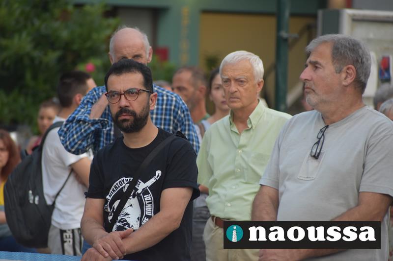 Χαιρετισμούς στην εκδήλωσε έκαναν η πρόεδρος του σωματείου εργαζομένων στο νοσοκομείο Νάουσας κα. Στέλλα Ζάλιου, το μέλος της διοίκησης του συλλόγου εκπαιδευτικών πρωτοβάθμιας εκπαίδευσης κα. Έλενα Μπενετάτου, ο κ. Νίκος Μάντζιος από την αγωνιστική συσπείρωση εμπόρων, ο κ. Γιάννης Διάκογλου από τα σωματεία συνταξιούχων ΙΚΑ-ΟΑΕΕ Νάουσας και ο πρόεδρος του ΕΚΝ κ. Νίκος Νατζμέ.