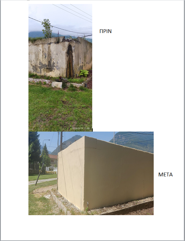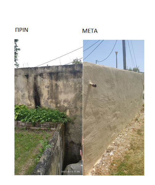 Το έργο αφορά την ανακατασκευή και την συντήρηση των τοιχωμάτων και της οροφής του κτιρίου καθώς και εργασίες ασβεστώματος, βαψίματος και μόνωσης, με ειδικά υλικά κατάλληλα για το πόσιμο νερό, εξωτερικά και εσωτερικά του οικίσκου στις Άνω Εργατικές Κατοικίες Νάουσας.