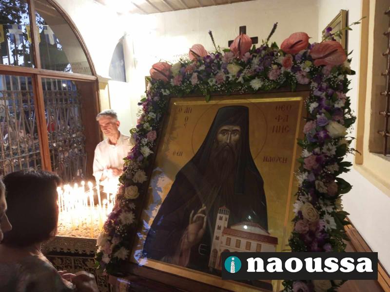 Η εικόνα του οσίου Θεοφάνη ανέφερε ο δεσπότης μας είναι καινούρια και θα την προσκυνήσει αύριο κι ένας πιστός από την Γερμανία που προσβλήθηκε βαριά από κοβιντ και είδε όραμα με τον όσιο ο οποίος τον θεράπευσε. Εις ένδειξη ευγνωμοσύνης προς τον πολιούχο μας θα βρεθεί αύριο στη θεία λειτουργία.