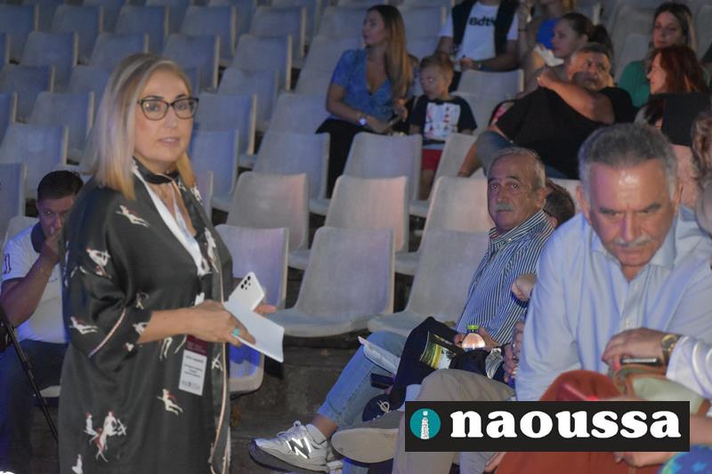Τους παρευρισκόμενους καλωσόρισε η κα. Θωμαή Μαγγανάρη, Πρόεδρος Επιτροπής Οινοτουρισμού Νάουσας, ενώ χαιρετισμούς στην εκδήλωση έκαναν ο δήμαρχος Νάουσας κ. Νικόλας Καρανικόλας, η εκπρόσωπος του αντιπεριφερειάρχη ΠΕ Ημαθίας κα. ΝίκηΚαρατζιούλα, ο Πρόεδρος Συνδέσμου Αμπελουργων – Οινοποιών Νάουσας κ. Γιώργος Φουντούλης και η Εντεταλμένη Σύμβουλος Τουρισμού Δήμου ΗΠ Νάουσας κα. Στέλλα Αραμπατζή.
