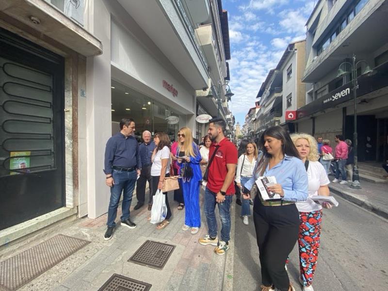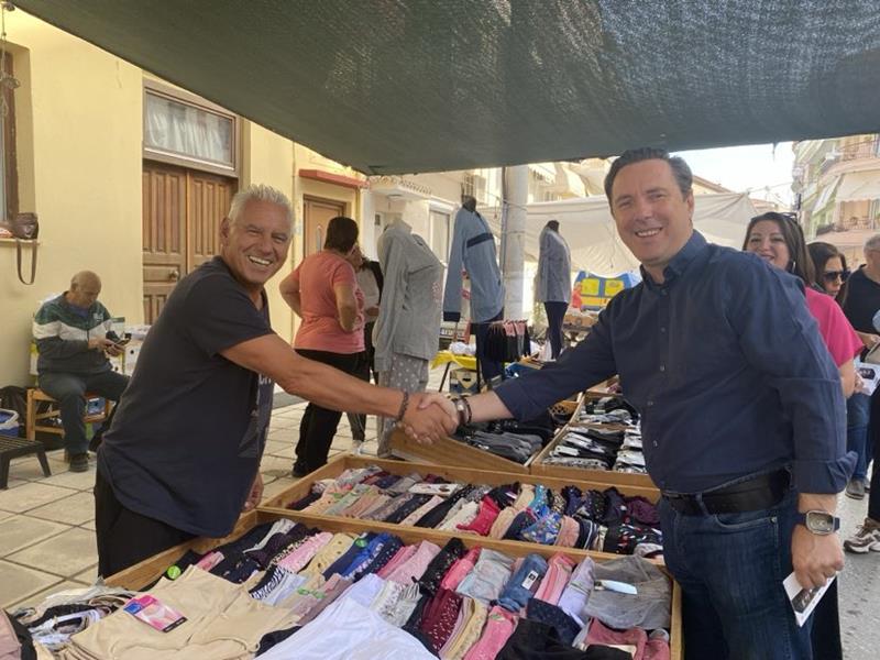 Εμπορικά καταστήματα, χώρους εστίασης, καταστήματα υγιειονομικού ενδιαφέροντος και τη λαϊκή αγορά της Νάουσας επισκέφθηκε το πρωί του Σαββάτου (30.09.2023) ο νυν Δήμαρχος Νάουσας και εκ νέου υποψήφιος στις επικείμενες αυτοδιοικητικές εκλογές, Νικόλας Καρανικόλας, συνοδευόμενος από υποψήφιους δημοτικούς συμβούλους του συνδυασμού «ΕΝΑ Μαζί».