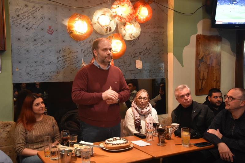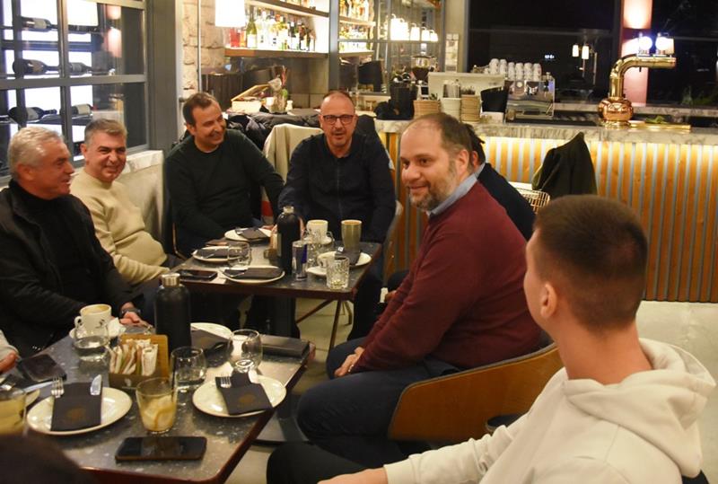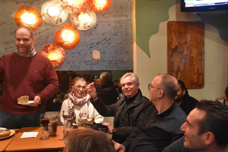 παραβρέθηκε στις κοπές βασιλοπιτών της ανδρικής ομάδας χάντμπολ του Ζαφειράκη Νάουσας και του ποδοσφαιρικού σωματείου του Αχιλλέα Νάουσας, το απόγευμα της Δευτέρας, παρουσία και του αρμόδιου αντιδημάρχου κ. Στέλιου Δάγγα.
