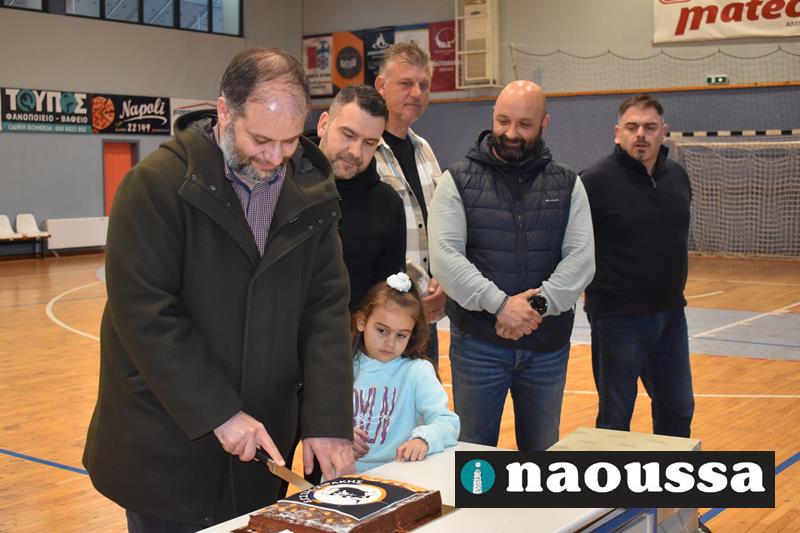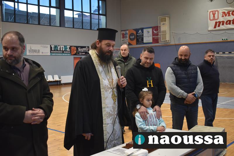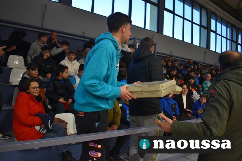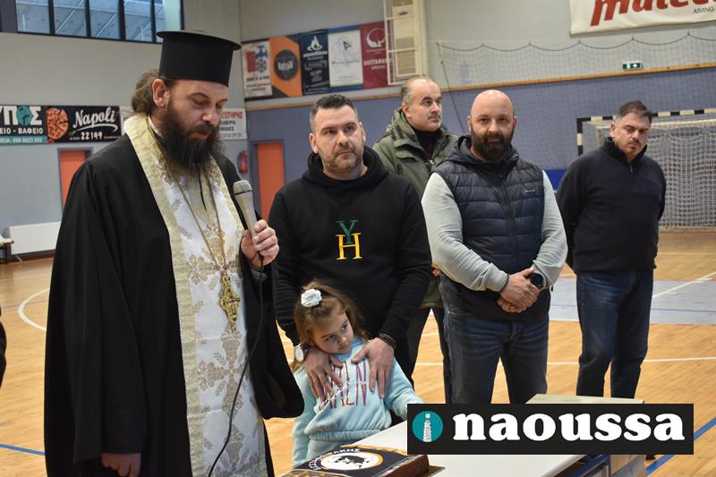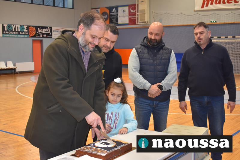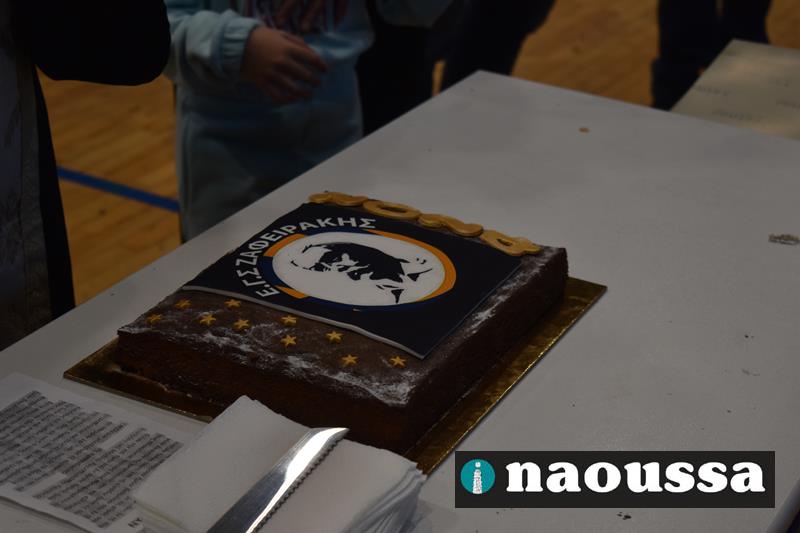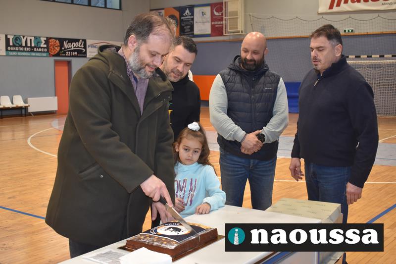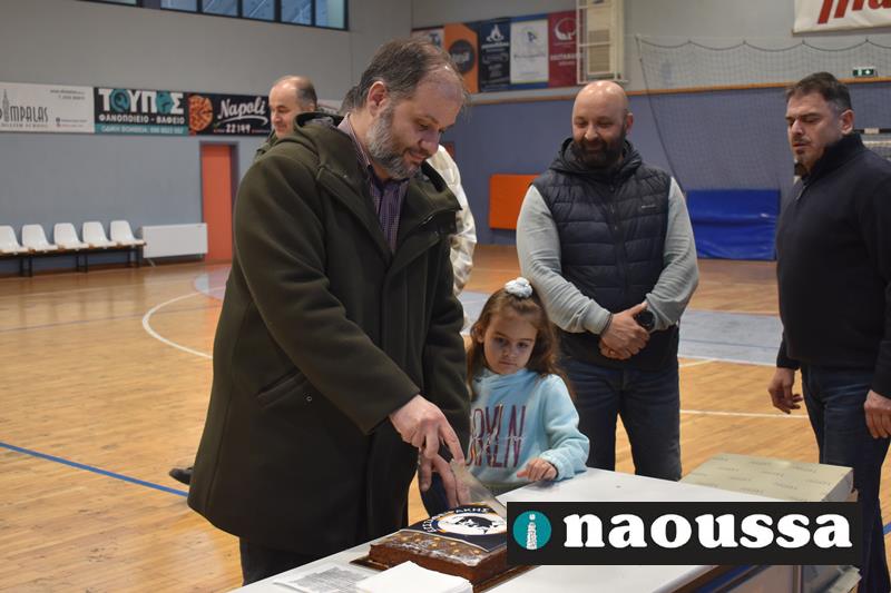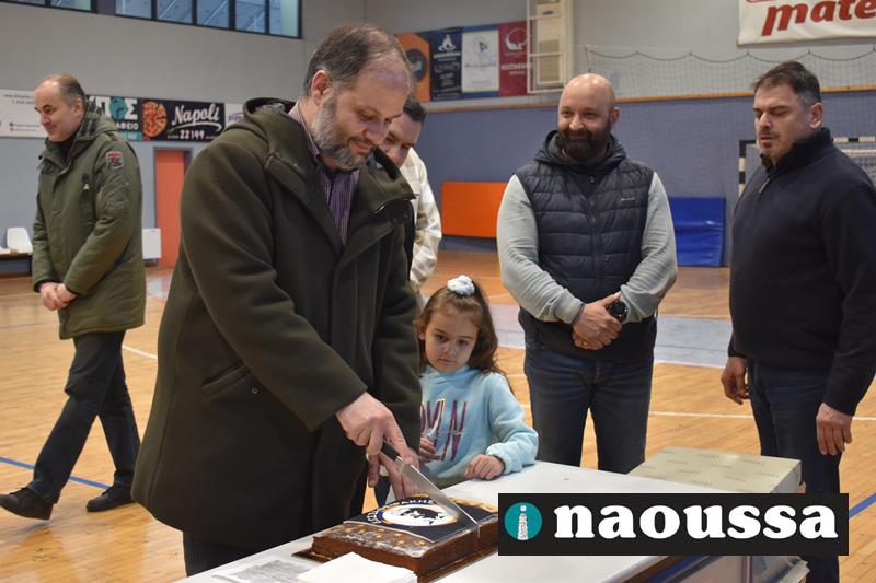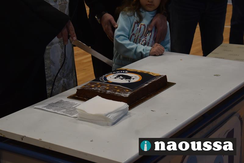 Στο κατάμεστο από παιδιά και γονείς κλειστό γυμναστήριο Νάουσας πραγματοποιήθηκε το απόγευμα της Τρίτης η κοπή βασιλόπιτας του Ζαφειράκη.