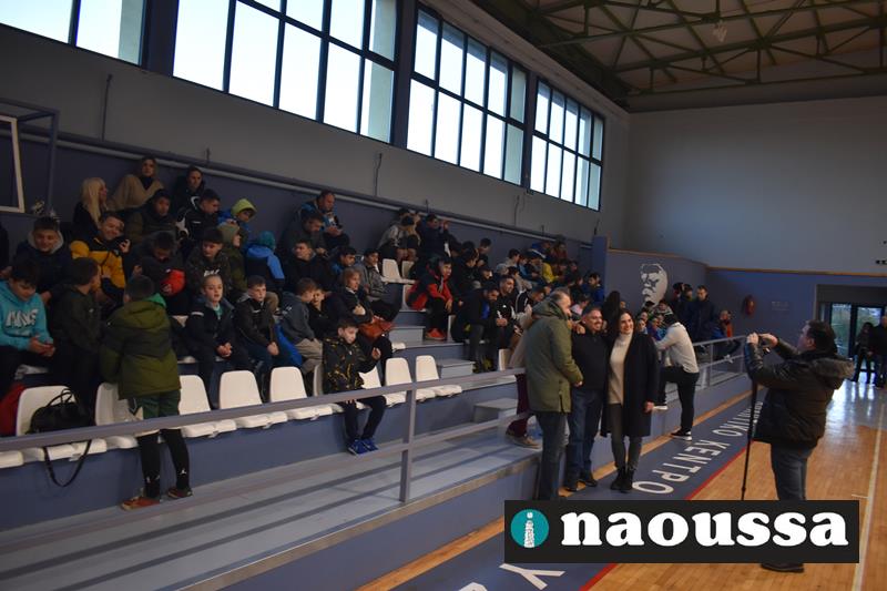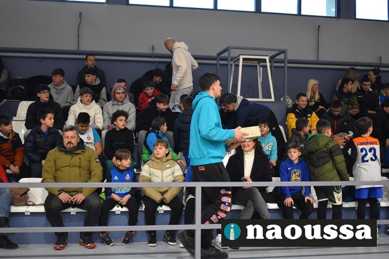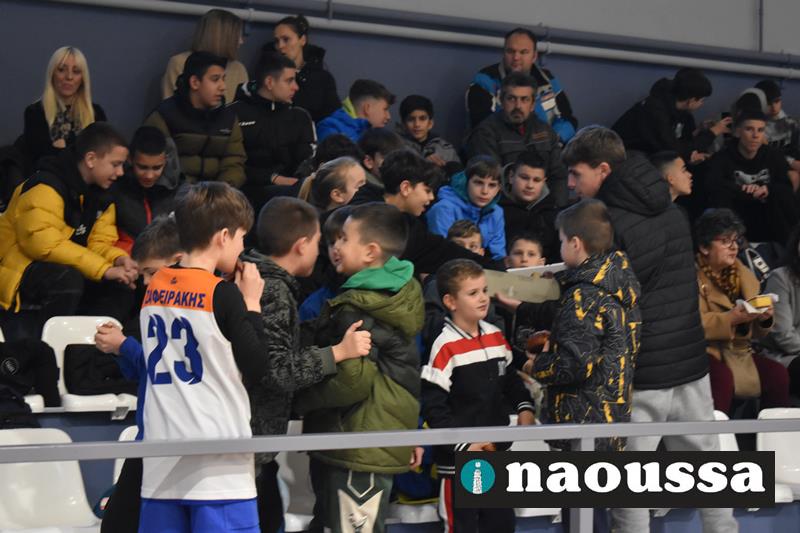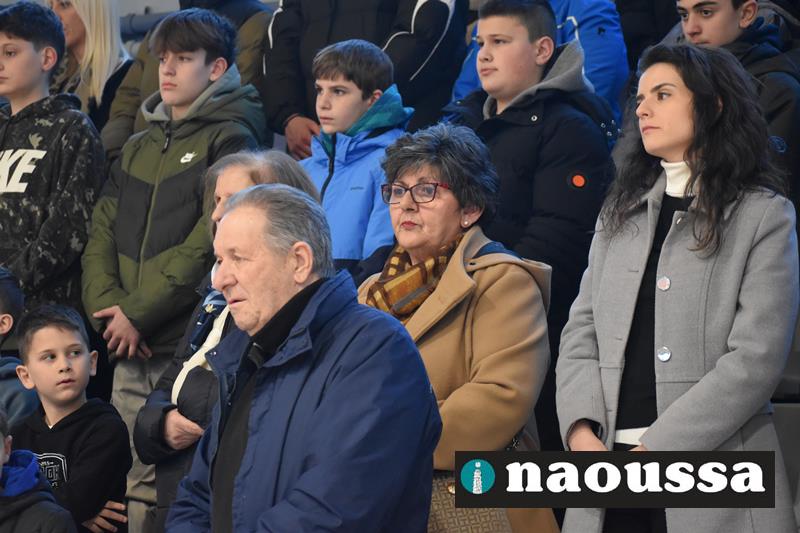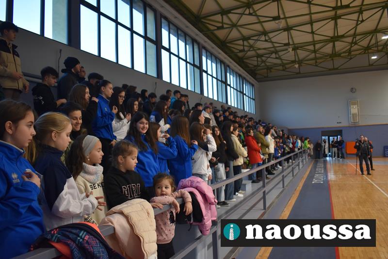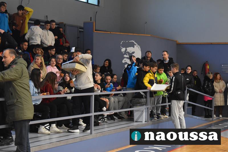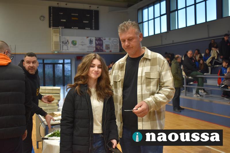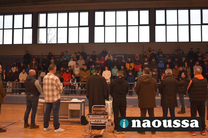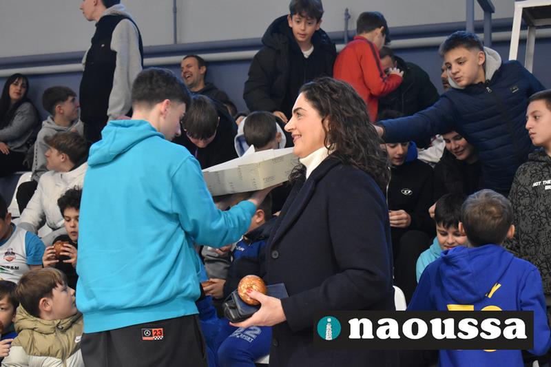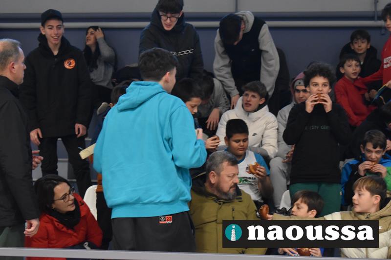 Στο κατάμεστο από παιδιά και γονείς κλειστό γυμναστήριο Νάουσας πραγματοποιήθηκε το απόγευμα της Τρίτης η κοπή βασιλόπιτας του Ζαφειράκη.