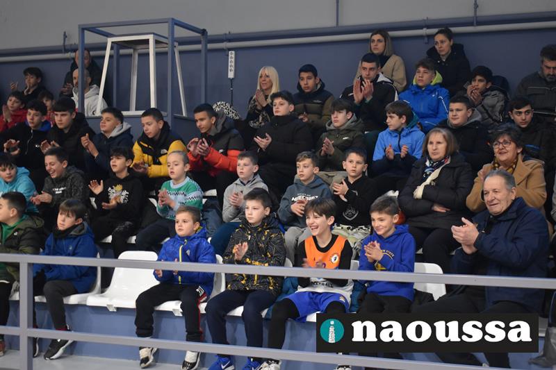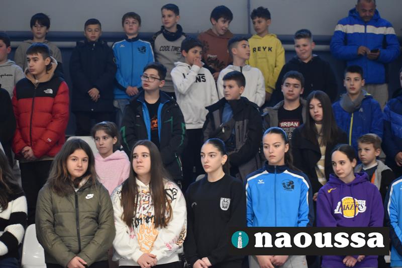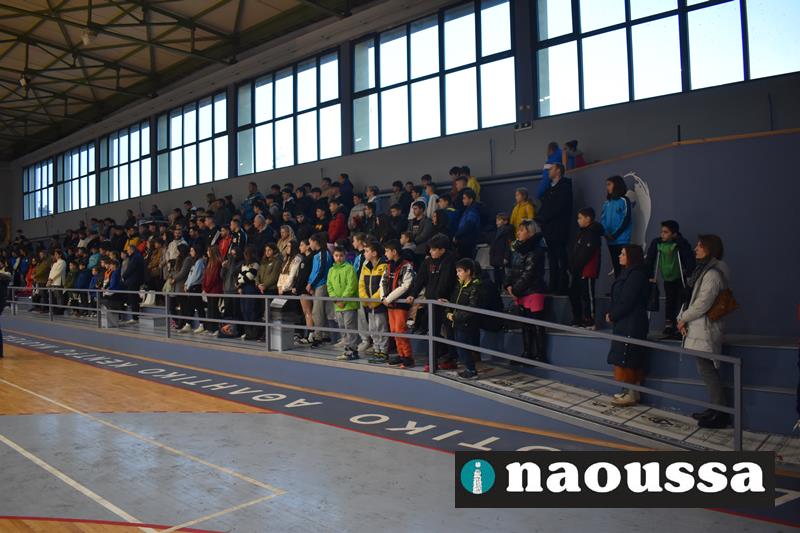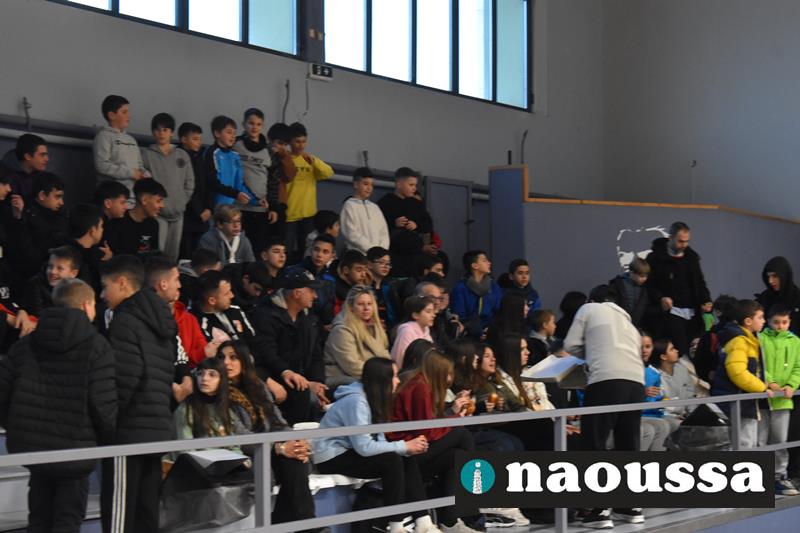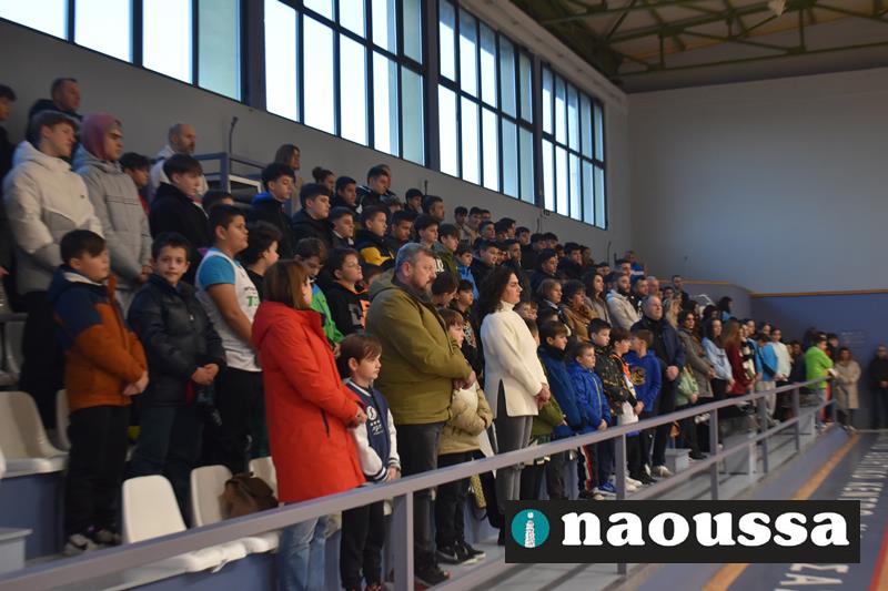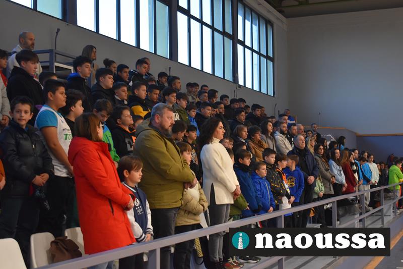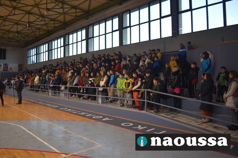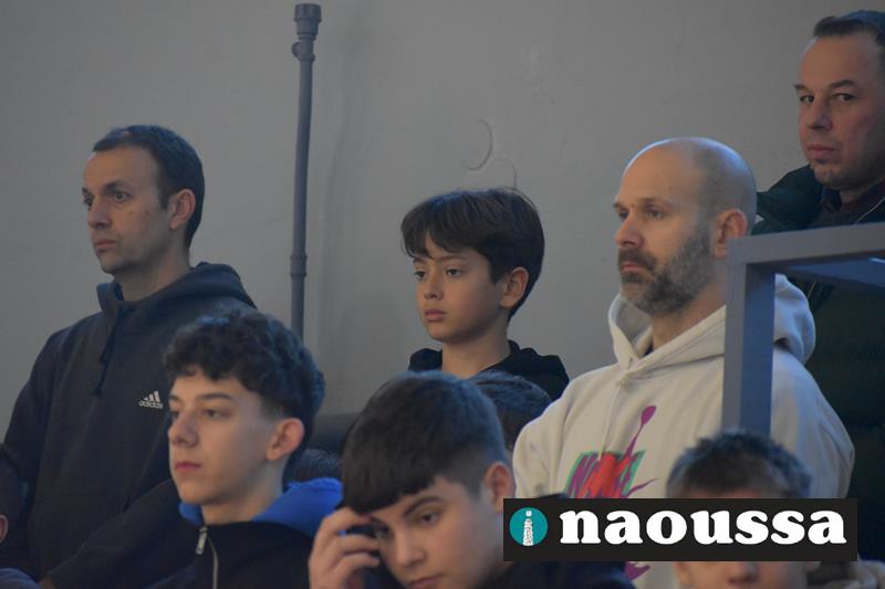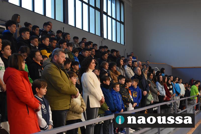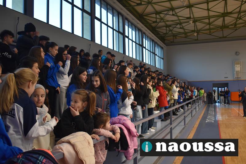 Στο κατάμεστο από παιδιά και γονείς κλειστό γυμναστήριο Νάουσας πραγματοποιήθηκε το απόγευμα της Τρίτης η κοπή βασιλόπιτας του Ζαφειράκη.