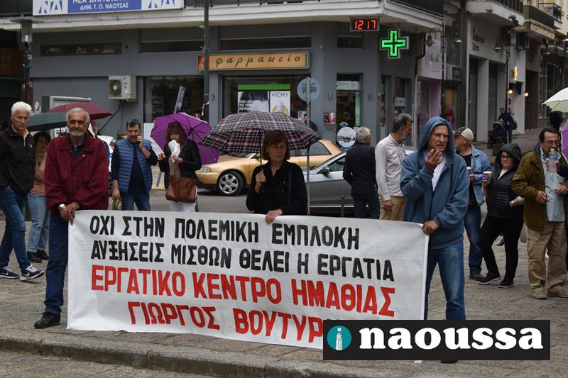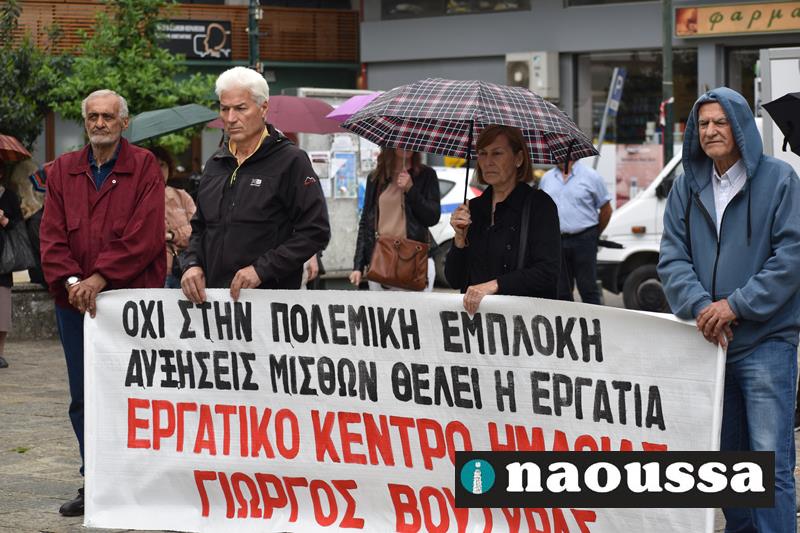 Απεργιακή κινητοποίηση πραγματοποιήθηκε το πρωί της Τετάρτης μετά από κάλεσμα του Εργατικού Κέντρου Ημαθίας στην πλατεία Καραράσου στη Νάουσα. Τους παρευρισκόμενους καλωσόρισε ο κ. Σάκης Τσίτσης .