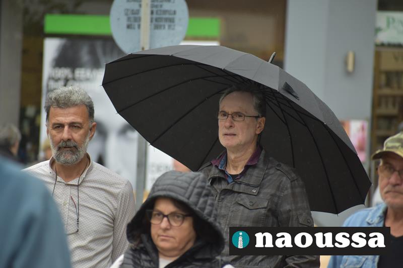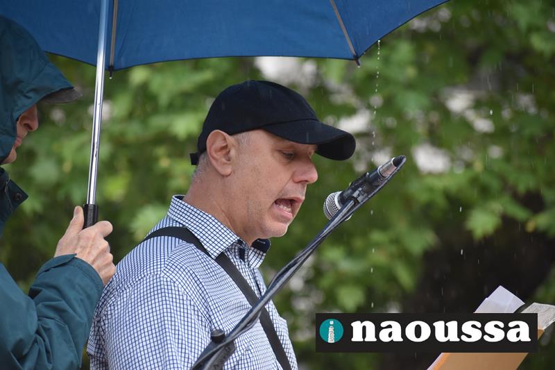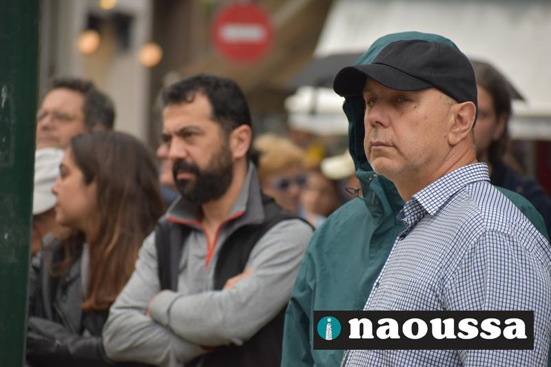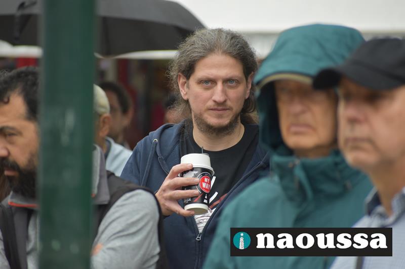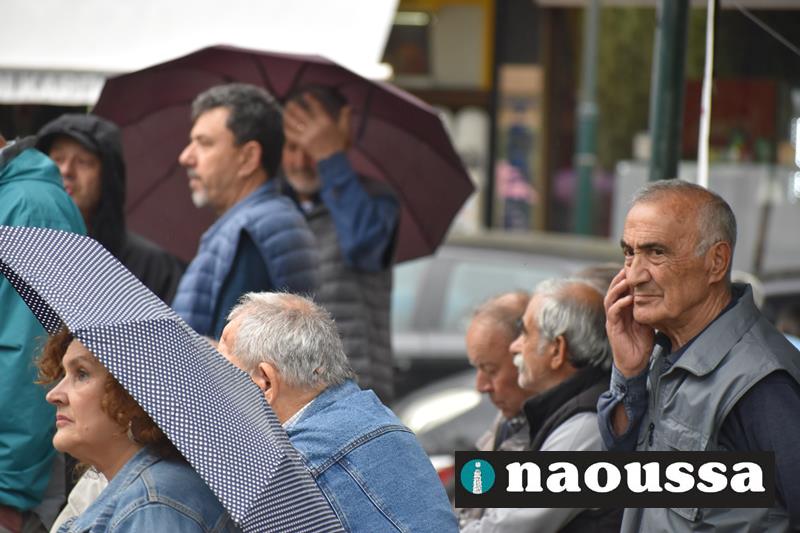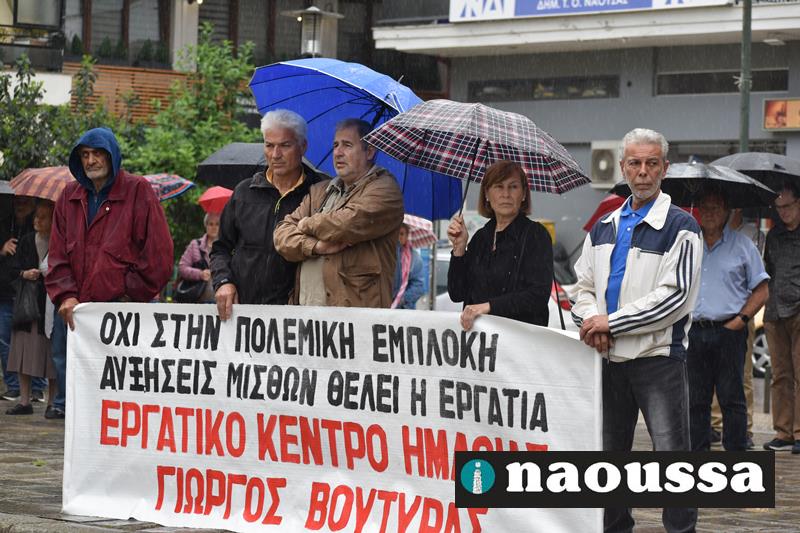 Χαιρετισμό στην απεργιακή κινητοποίηση έκαναν η κα. Χαρίκλεια Ροδοβίτη εκ μέρους της ΟΓΕ Νάουσας, ο κ. Γιώργος Κασαπίδης από το SOS Βέρμιο, ο κ. Ηλίας Κοτσεκίδης από το σωματείο συνταξιούχων ΟΑΕΕ Νάουσας, ο κ. Αντώνης Γρέζιος από τον αγροτικό σύλλογο Μαρίνο Αντύπα. Την κεντρική ομιλία έκανε ο κ. Σταύρος Ζάχος από το Εργατικό Κέντρο Ημαθίας.