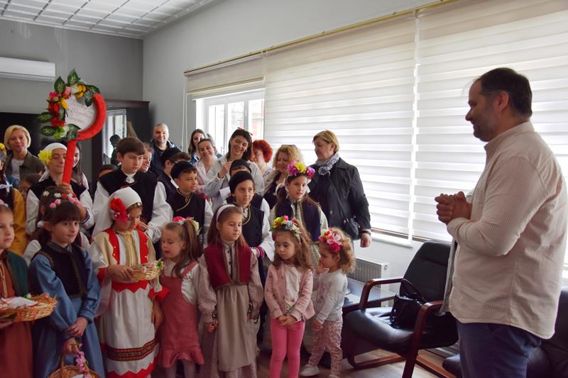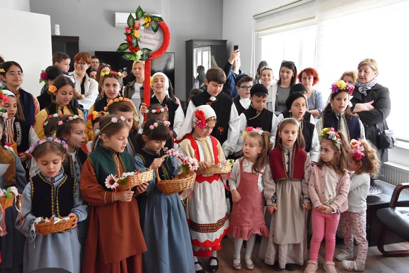 Μικροί χορευτές του Συλλόγου μαζί με την πρόεδρο κα Θεοπίστη Κεφαλά και τον χοροδιδάσκαλο κ. Άκη Τσιάρκα, επισκέφθηκαν τον Δήμαρχο του Δήμου Ηρωικής Πόλης Νάουσας κ. Νίκο Κουτσογιάννη, παρουσία και της Αντιδημάρχου Πολιτισμού κας Βίκυς Δανιηλίδου, παρουσίασαν τις «Λαζαρίνες», τραγούδησαν και μοίρασαν άσπρα αυγά.