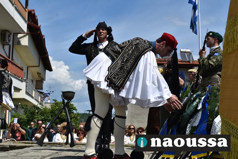 Την επιµνηµόσυνη δέηση, ακολούθησε η ρίψη στέφανου στον ποταμό από τον κ. Διονύσιο Σταμενίτη εκπρόσωπος της Κυβέρνησης και η κατάθεση στεφάνων στο μνημείο. Τον πανηγυρικό της ημέρα ανέγνωσε ο κ. Στοίδης, με τις εκδηλώσεις να κλείνουν με την παρουσίαση του ιστορικού χορού «Μακρυνίτσα» προς τιµήν της θυσίας των Ναουσαίων Ηρωίδων γυναικών και ένα ποίημα στην μνήμη τους.