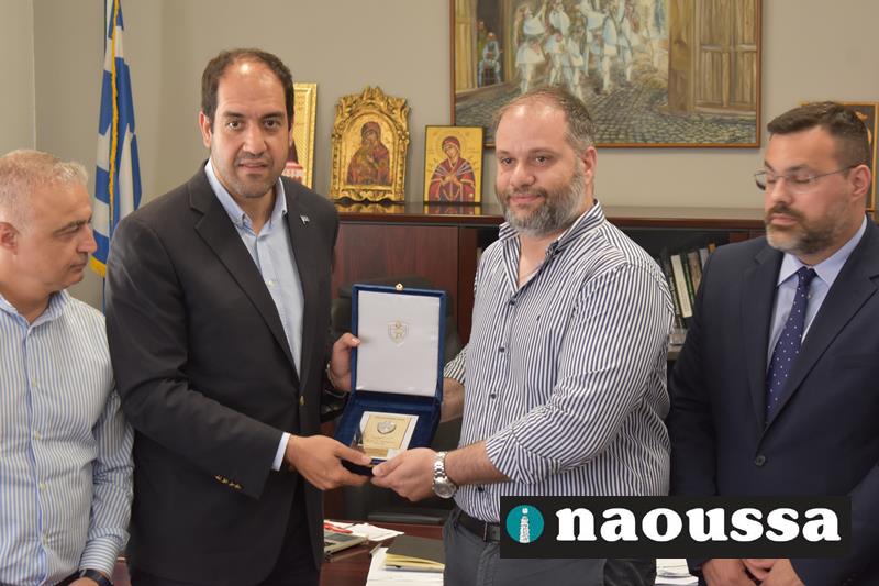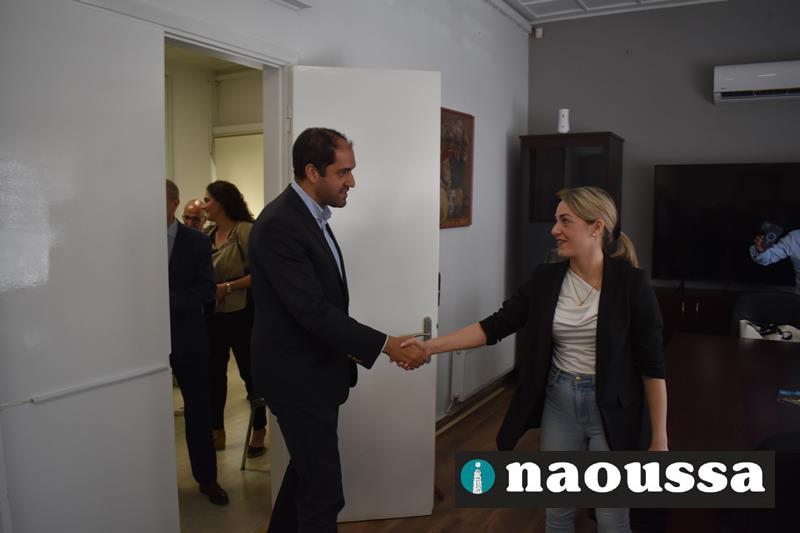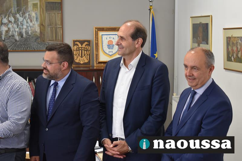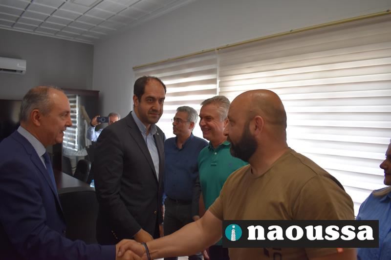 Ο δήμαρχος κ. Νικόλαος Κουτσογιάννης τον καλωσόρισε στον δήμο αναφερόμενος στα έργα που προγραμματίζει η δημοτική αρχή, αλλά και την ανάγκη σύνδεσης της Νάουσας με την Εγνατία. Ακόμα στάθηκε ιδιαίτερα στην ανάγκη να ολοκληρωθεί η διαδικασία για την κατά κυριότητα παραχώρηση του πρώην στρατοπέδου «Μίγγα» στον δήμο Νάουσας για να δημιουργηθεί εκεί ένα πρότυπο κέντρο παιδείας και πολιτισμού.