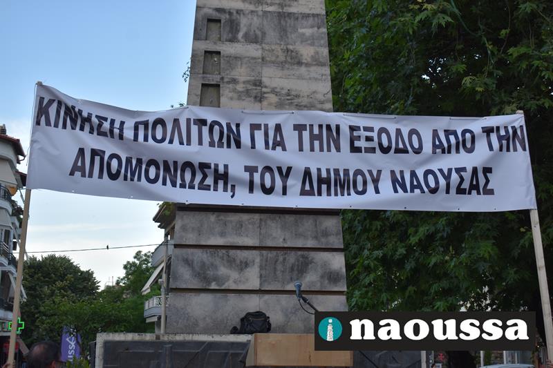 Στην πλατεία Καρατάσου πραγματοποιήθηκε το απόγευμα της Τρίτης το πρώτο συλλαλητήριο ΑΦΥΠΝΙΣΗΣ-ΕΓΡΗΓΟΡΣΗΣ- ΔΙΕΚΔΙΚΗΣΗΣ της ΚΙΝΗΣΗΣ ΠΟΛΙΤΩΝ ΓΙΑ ΤΗΝ ΕΞΟΔΟ ΑΠΟ ΤΗΝ ΑΠΟΜΟΝΩΣΗ ΤΟΥ ΔΗΜΟΥ ΝΑΟΥΣΑΣ.