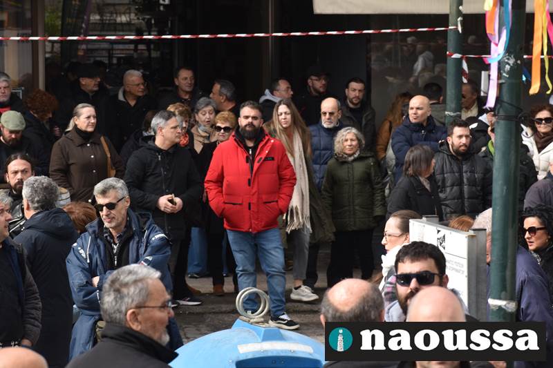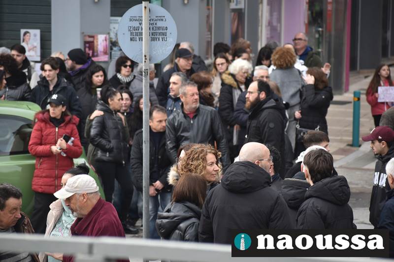 Καθολική ήταν η συμμετοχή των επαγγελματιών, που έκλεισαν τα καταστήματά τους και των μαθητών της Νάουσας που ζήτησαν δικαιοσύνη για το έγκλημα.
