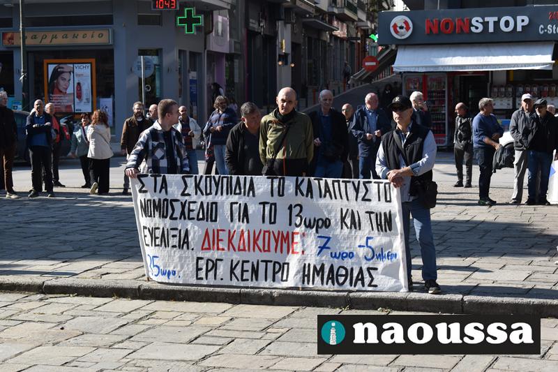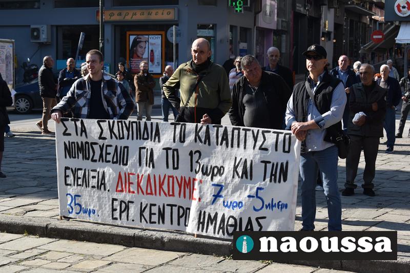Απεργιακή συγκέντρωση πραγματοποιήθηκε το πρωί της Τρίτης στην κεντρική πλατεία της Νάουσας, με πρωτοβουλία του Εργατικού Κέντρου Ημαθίας «Γεώργιος Βούτυρας», στο πλαίσιο της πανελλαδικής κινητοποίησης ενάντια στο νέο εργασιακό νομοσχέδιο.