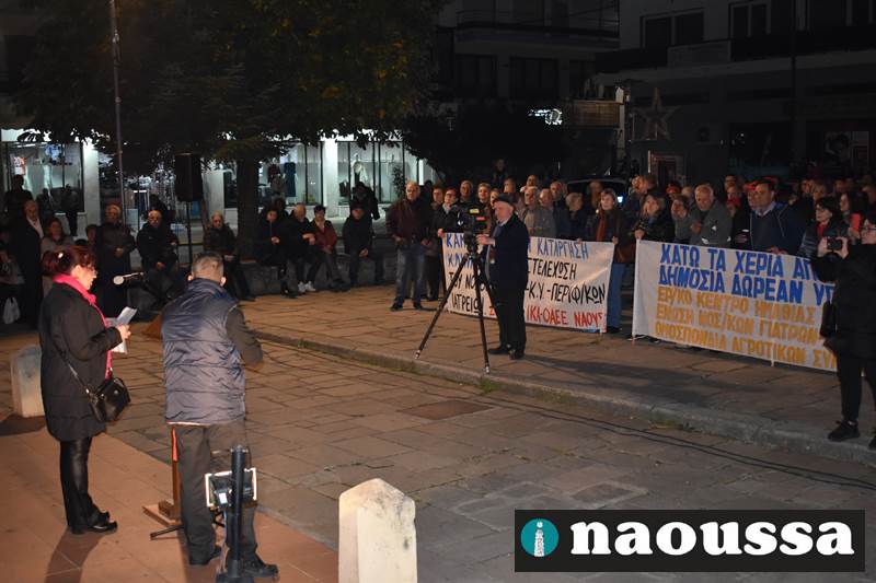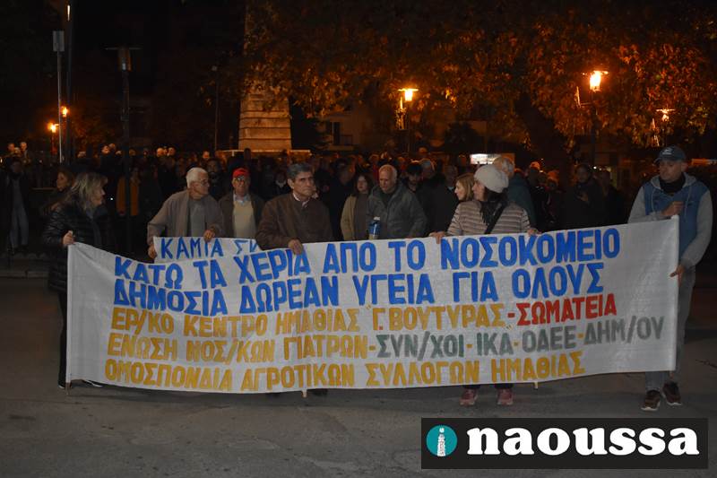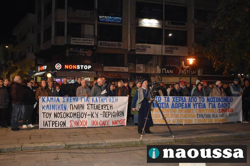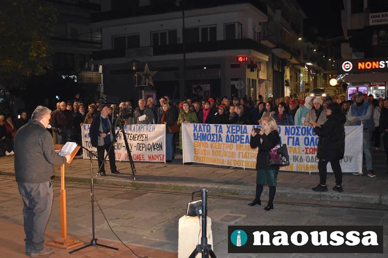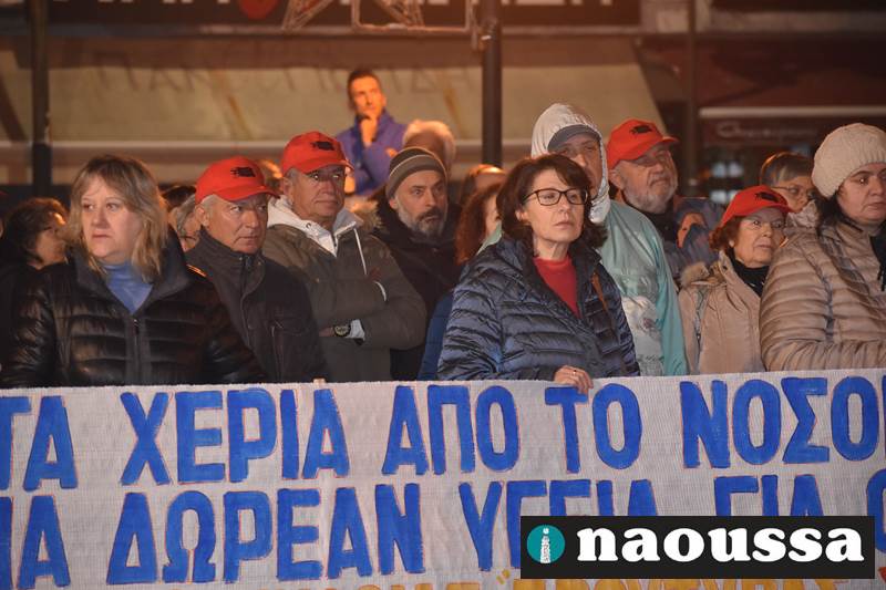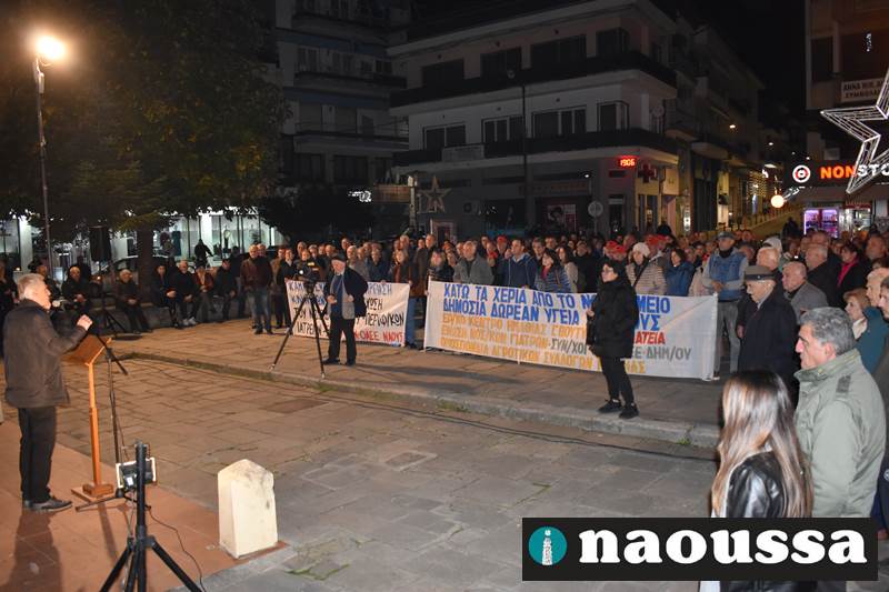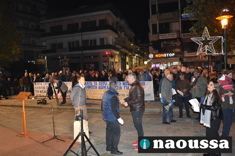 Με μεγάλη συμμετοχή κόσμου πραγματοποιήθηκε το απόγευμα του Σαββάτου το συλλαλητήριο για το νοσοκομείο Νάουσας στην πλατεία Καρατάσου.