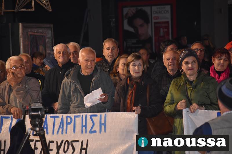 Στο συλλαλητήριο που διοργάνωσε το Εργατικό Κέντρο Ημαθίας και στήριξαν μεταξύ άλλων τα σωματεία: Ένωση Ιατρών Νομού Ημαθίας - Ιδιωτικών Υπαλλήλων – Βαρβαρέσου- Τροφίμων- Οικοδόμων- Συνταξιούχων ΙΚΑ και ΟΑΕΕ Νάουσας – Ενωτική Ομοσπονδία Αγροτικών Συλλόγων Νομού Ημαθίας – Αγροτικός Σύλλογος Νάουσας « Μαρίνος Αντύπας» χαιρετισμούς έκαναν: Η μικρή μαθήτρια Δέσποινα, ο Παναγιώτης Χατζησάββας, πρόεδρος του συλλόγου εκπαιδευτικών πρωτοβάθμιας Ημαθίας, ο Σούλης Ανδεόπουλος, πρόεδρος των συνταξιούχων ΙΚΑ Βέροιας, ο Τάκης Τσουλάκος πρόεδρος της Ενωτικής Ομοσπονδία Ημαθίας , ο Ηλίας Κοτσεκίδης πρόεδρος του σωματείου συνταξιούχων ΟΑΕΕ Νάουσας, ο Μάντσος Νίκος μέλος της αγωνιστικής συσπείρωσης εμπόρων-αντιπρόεδρος του εμπορικού συλλόγου Νάουσας, η Γρατσιάνου Ευαγγελία, νοσηλεύτρια του νοσοκομείου Βέροια, εκλεγμένη με την αγνωστική συσπείρωση. Την κεντρική ομιλία έκανε ο πρόεδρος του Εργατικού Κέντρου Ημαθίας κ. Νίκος Νατζμέ. Τα βασικά αιτήματα τους ήταν:
