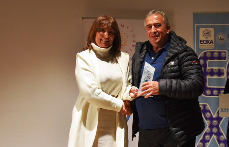 Τιμήθηκε επίσης ο κ. Δημοσθένης Γυρούσης, ο οποίος επί δεκαετίες υπηρέτησε την ελληνική χιονοδρομία ως αθλητής, προπονητής και πρόεδρος του Ε.Ο.Σ. Νάουσας, καθώς και της Ομοσπονδίας Χιονοδρομίας.