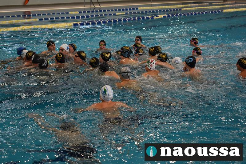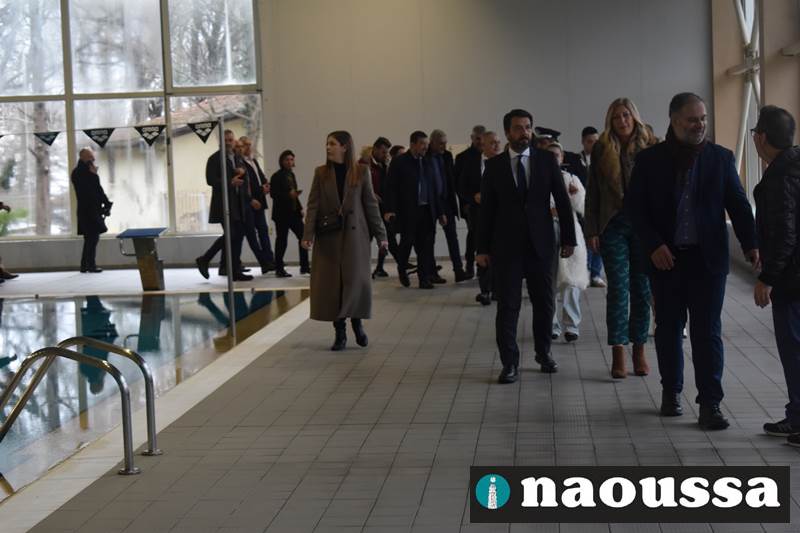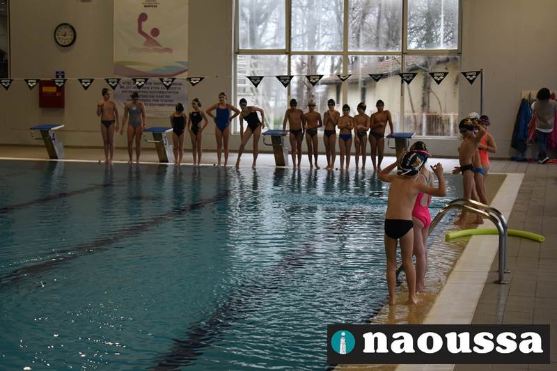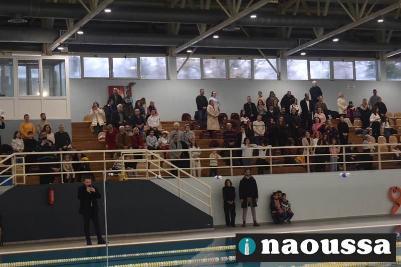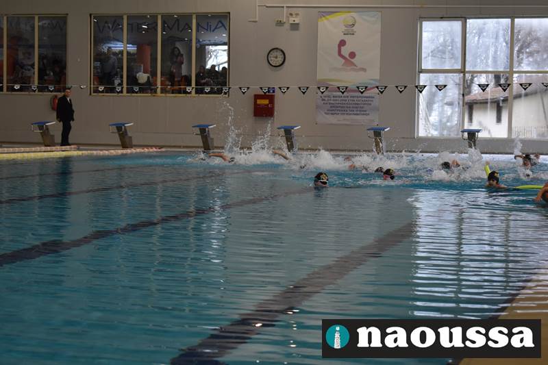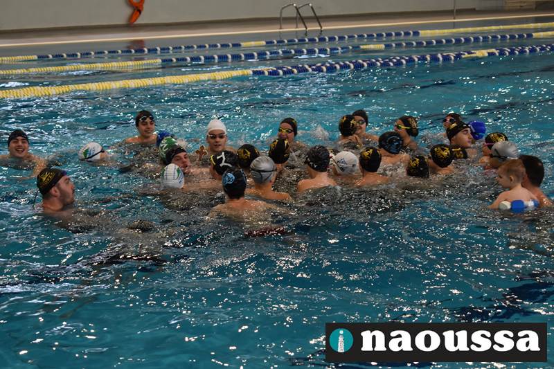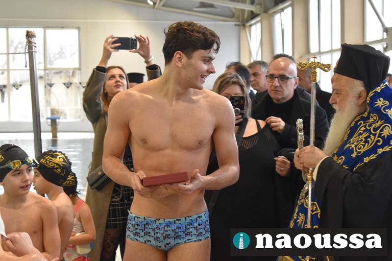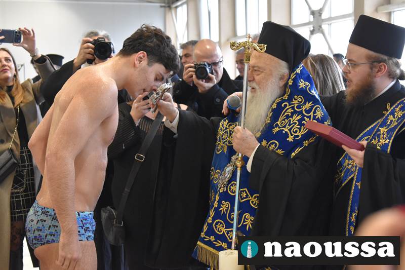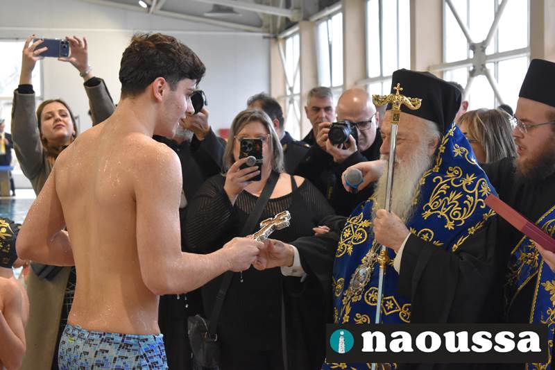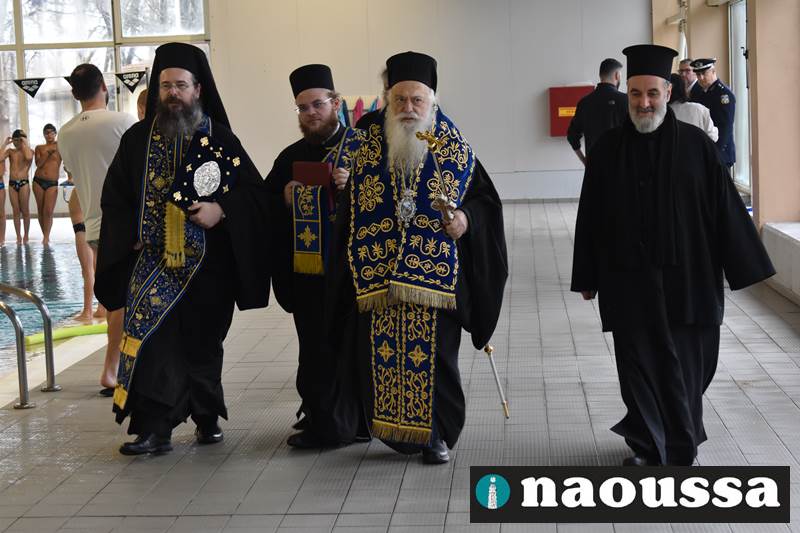 Μετά το πέρας του Αγιασμού των υδάτων στο ποτάμι της Αράπιτσας, ακολούθησε ο καθιερωμένος πλέον Αγιασμός των υδάτων στο κατάμεστο δημοτικό κολυμβητήριο Νάουσας.