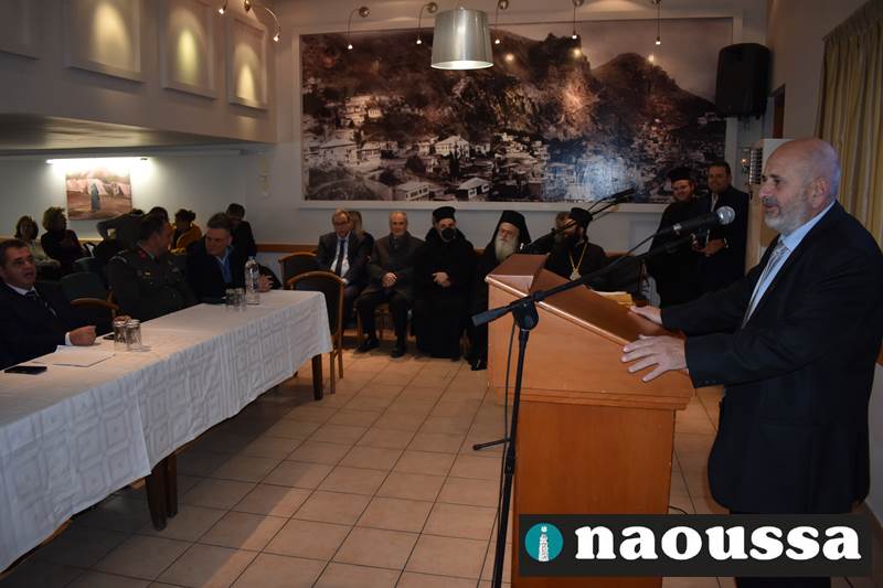 Ο πρόεδρος της Ε.Λ.Π. Νάουσας, κ. Φώτης Φανιάδης, ευχαρίστησε τον κόσμο για την παρουσία του στην κοπή της βασιλόπιτας και αναφέρθηκε στις τιτάνιες προσπάθειες του συλλόγου για τη διάσωση και ανάδειξη της Εθνικής Βιβλιοθήκης Αργυρουπόλεως «Ο Κυριακίδης», από την οποία σύντομα θα υπάρξουν σημαντικά νέα για τη Νάουσα.