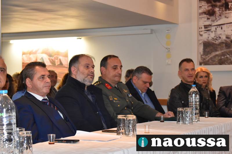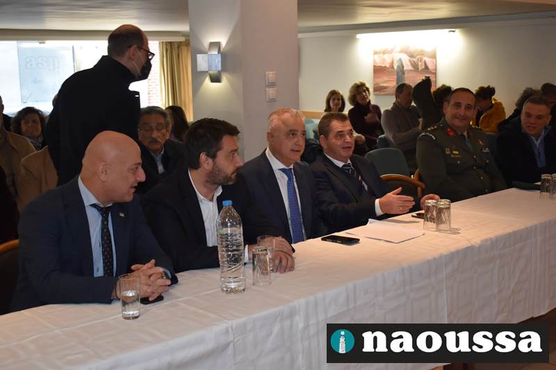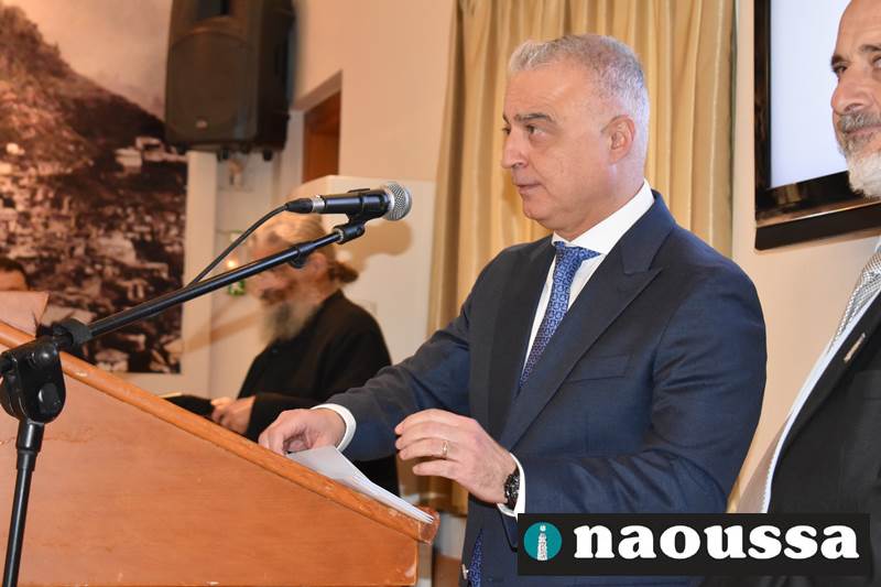 Χαιρετισμούς στην εκδήλωση απηύθυναν ο υφυπουργός Ανάπτυξης κ. Λάζαρος Τσαβδαρίδης, οι βουλευτές Ημαθίας κ. Αναστάσιος Μπαρτζώκας και κ. Βασίλειος Κοτίδης, ο αντιπεριφερειάρχης Ημαθίας κ. Κώστας Καλαϊτζίδης και ο δήμαρχος Νάουσας κ. Νίκος Κουτσογιάννης.