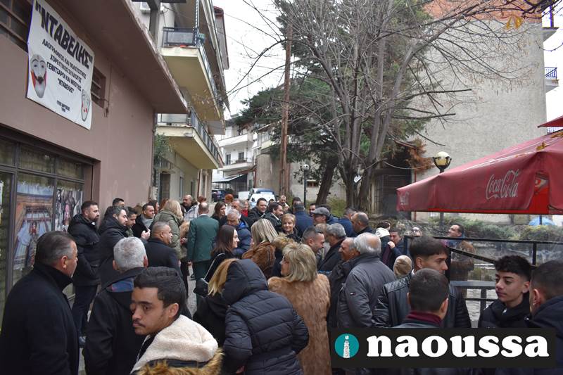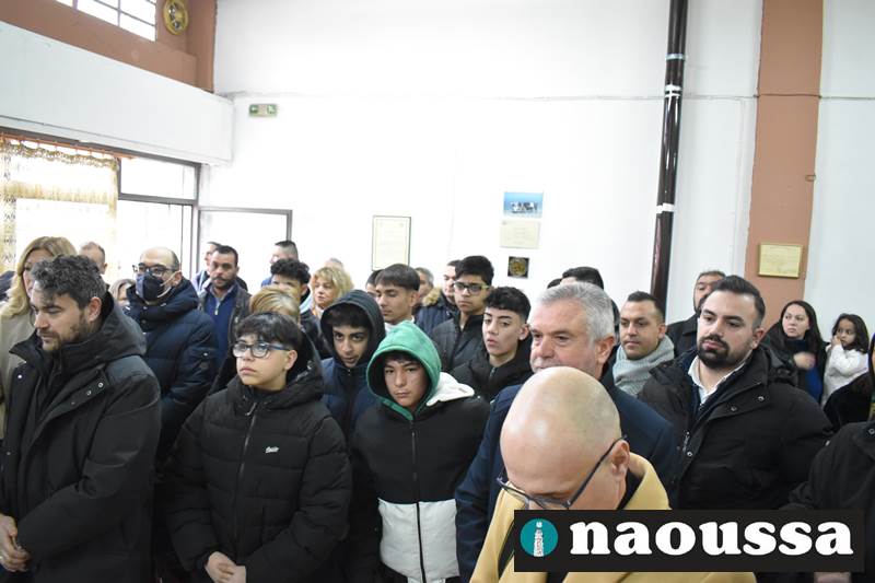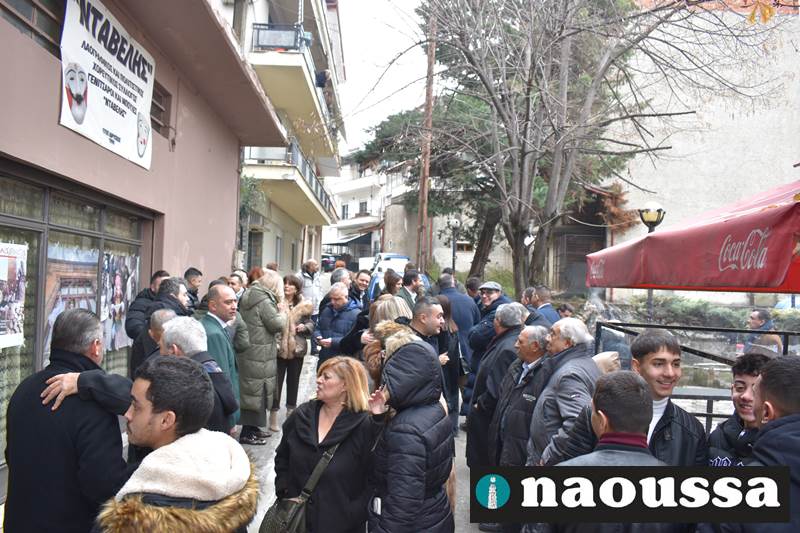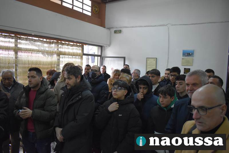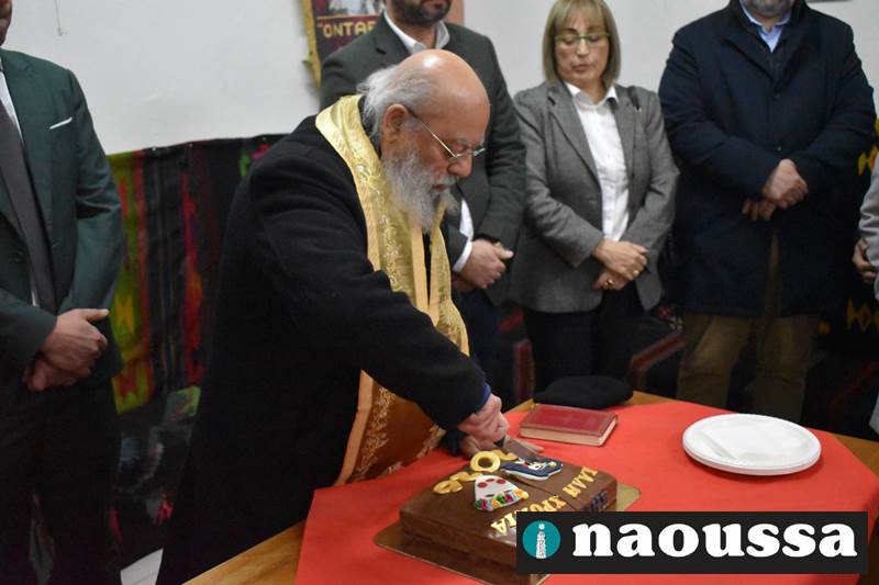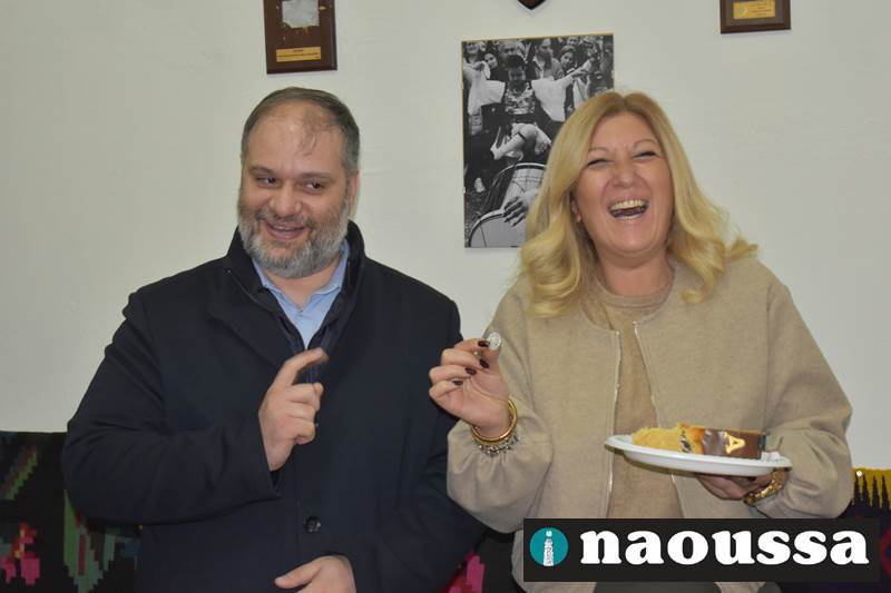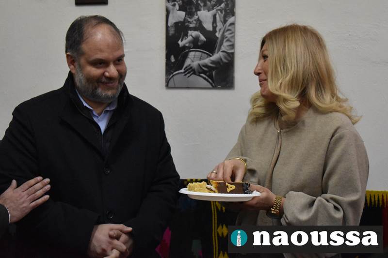 Ακολούθησαν οι χαιρετισμοί των επισήμων και η κοπή της βασιλόπιτας που συνοδεύτηκε με κεράσματα και ευχές για καλή αποκριά. Το φλουρί της βασιλόπιτας ήταν στο κομμάτι του δημάρχου Νάουσας κ. Νίκου Κουτσογιάννη.