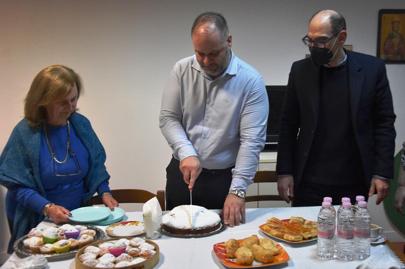 Στη συνέχεια, το απόγευμα της ίδιας ημέρας, σε ζεστό και οικογενειακό κλίμα, ο κ. Κουτσογιάννης παρευρέθηκε στην κοπή της βασιλόπιτας του Κ.Α.Π.Η. Μαρίνας, ανταλλάσσοντας ευχές με το προσωπικό και τα μέλη της δομής, τονίζοντας τη σημασία της φροντίδας και της ενεργούς συμμετοχής των ανθρώπων της τρίτης ηλικίας στην κοινωνική ζωή του Δήμου.