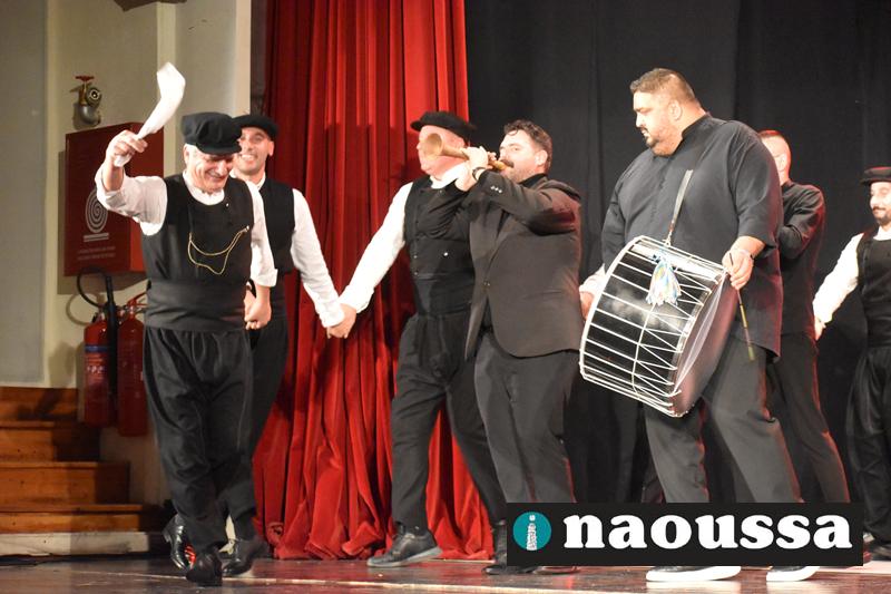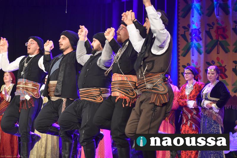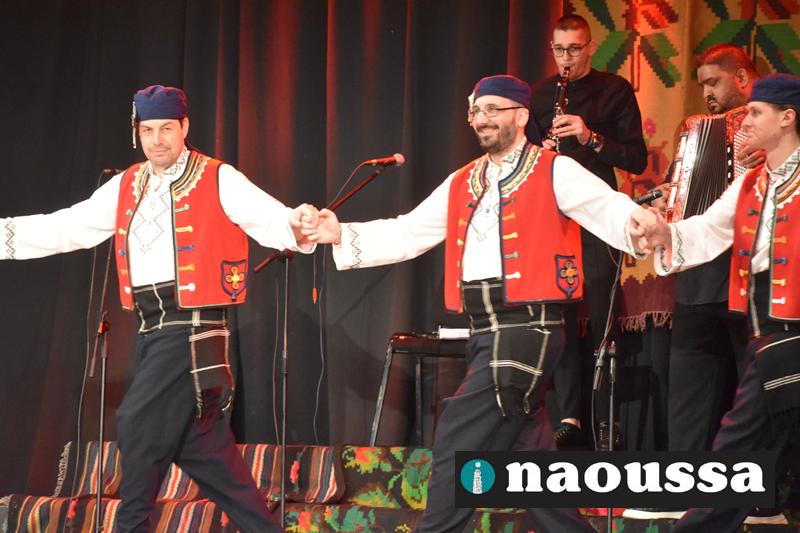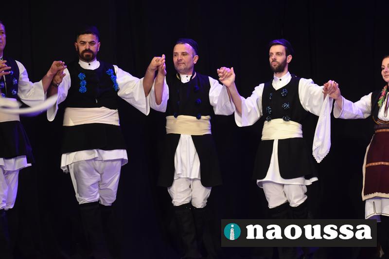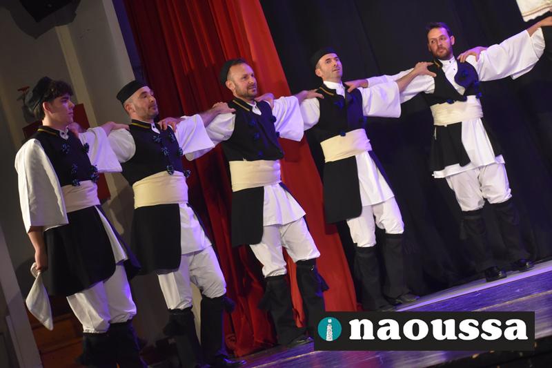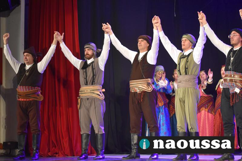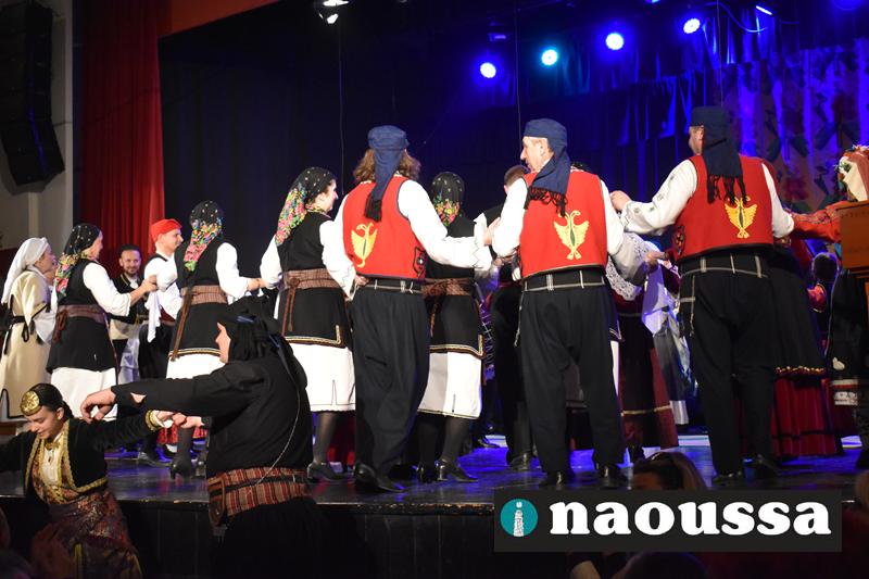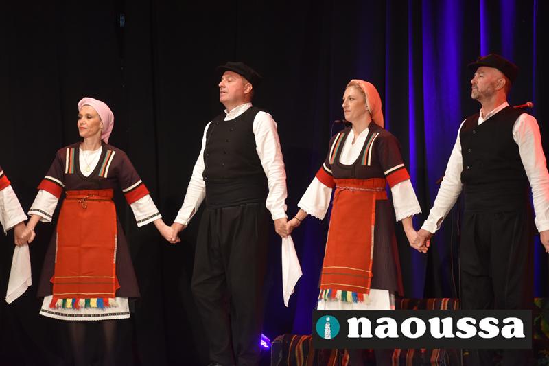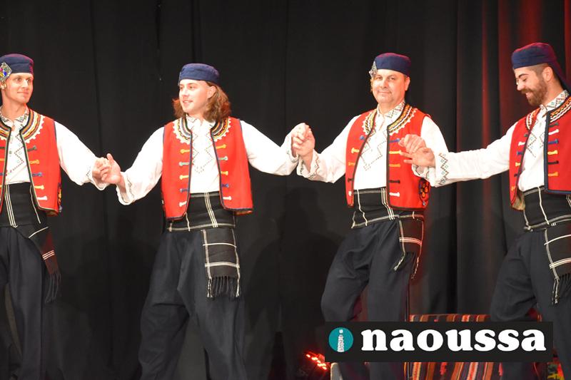 Στη σκηνή παρουσιάστηκε ένα πλούσιο πρόγραμμα αφιερωμένο στην ελληνική παράδοση, με τη συμμετοχή των τμημάτων της διοργανώτριας λέσχης (Ποντιακών και Πανελληνίων χορών), καθώς και των πολιτιστικών συλλόγων: Λαογραφικός Σύλλογος Βλάχων Νάουσας, Η Αράπιτσα - Όμιλος Περιβάλλοντος και Πολιτισμού, Πολιτιστικός και Μορφωτικός Σύλλογος Νέας Κρήνης «Η Μπουμπουλίνα», Πολιτιστικός Σύλλογος Καρπενησίου, Σύλλογος Παραδοσιακής Μουσικής Ικαρίας και Χορευτικός Όμιλος Νάουσας.
