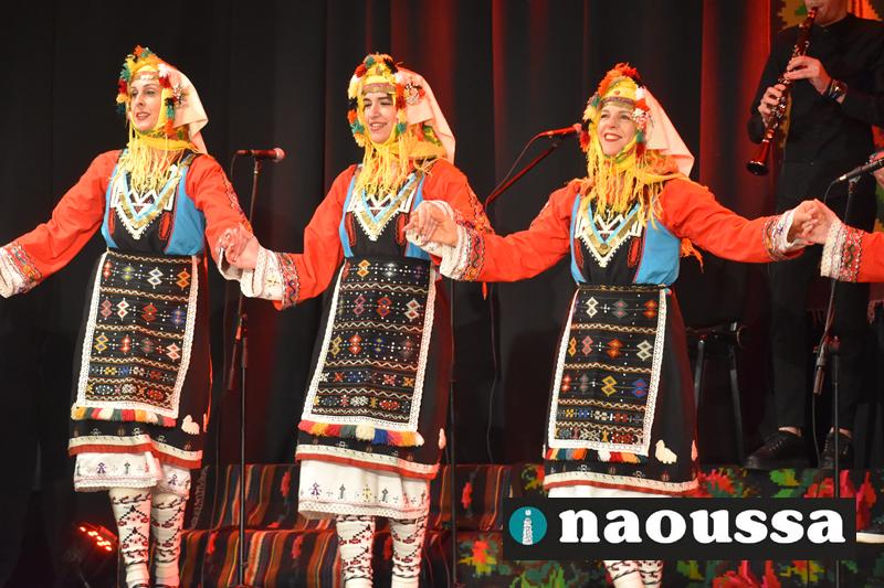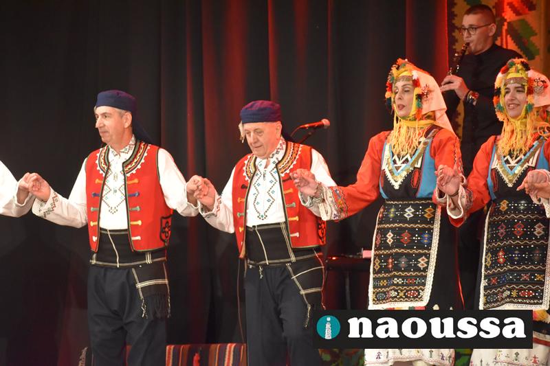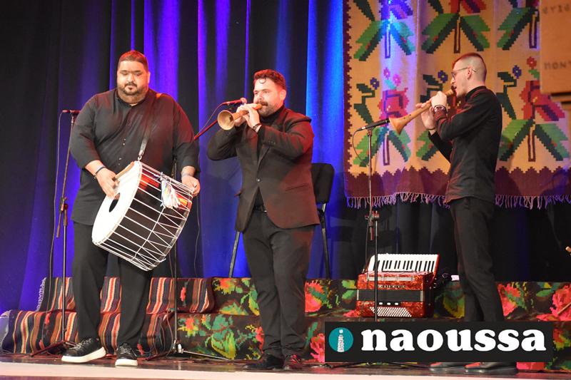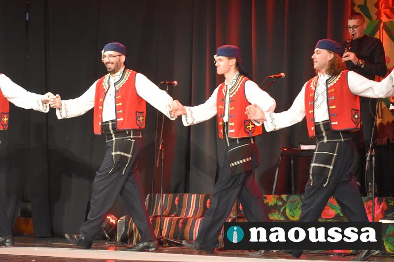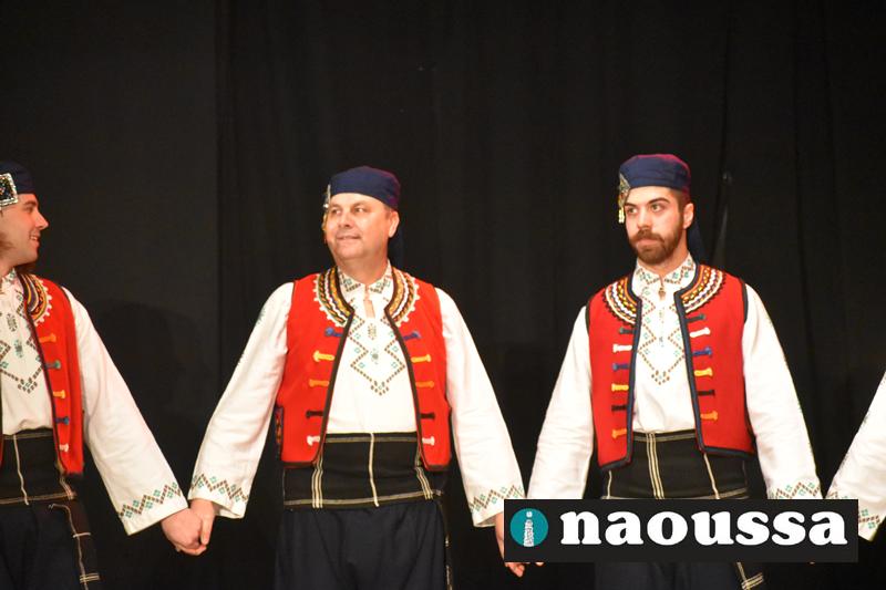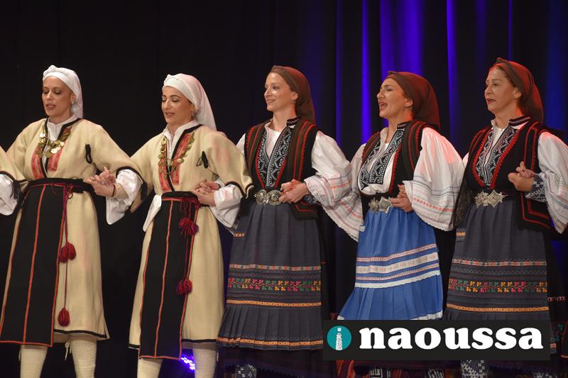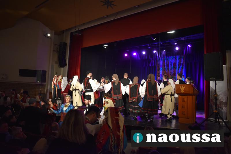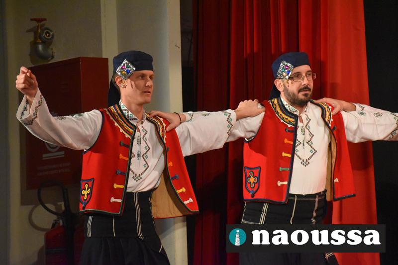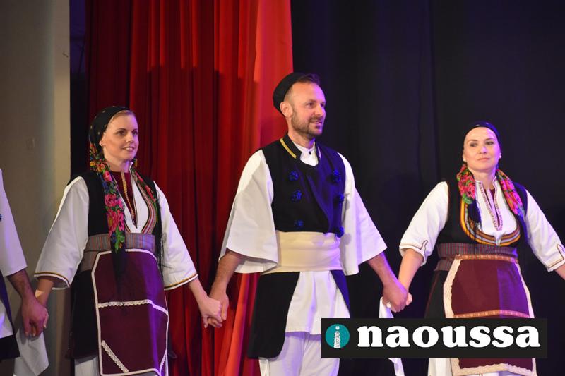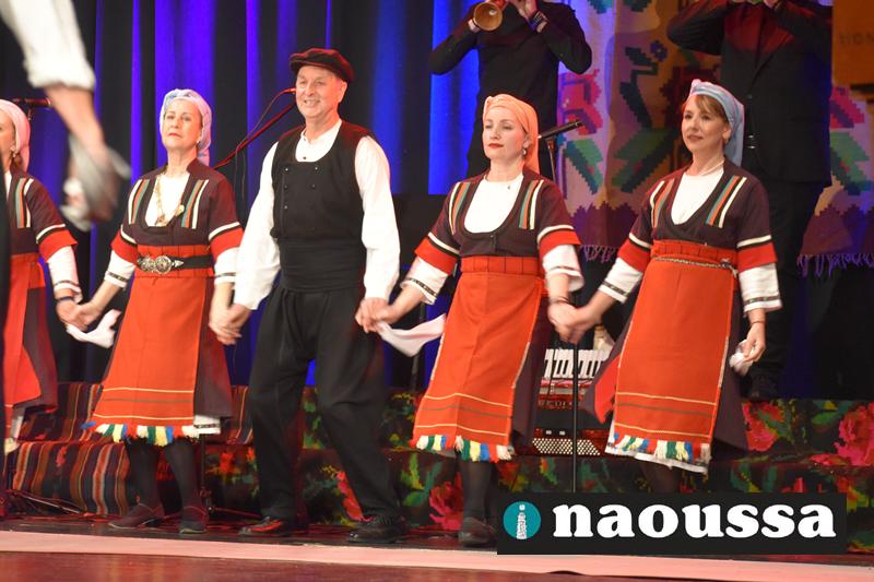 Στη σκηνή παρουσιάστηκε ένα πλούσιο πρόγραμμα αφιερωμένο στην ελληνική παράδοση, με τη συμμετοχή των τμημάτων της διοργανώτριας λέσχης (Ποντιακών και Πανελληνίων χορών), καθώς και των πολιτιστικών συλλόγων: Λαογραφικός Σύλλογος Βλάχων Νάουσας, Η Αράπιτσα - Όμιλος Περιβάλλοντος και Πολιτισμού, Πολιτιστικός και Μορφωτικός Σύλλογος Νέας Κρήνης «Η Μπουμπουλίνα», Πολιτιστικός Σύλλογος Καρπενησίου, Σύλλογος Παραδοσιακής Μουσικής Ικαρίας και Χορευτικός Όμιλος Νάουσας.