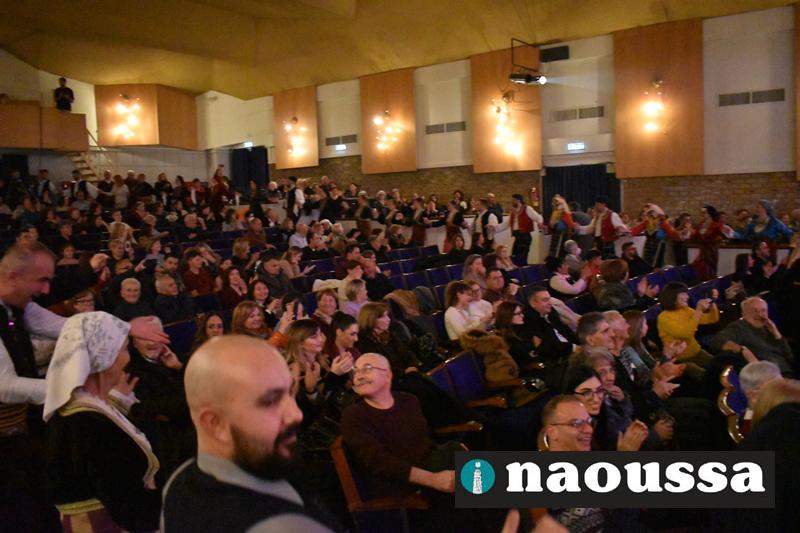 Το βράδυ του Σαββάτου, το Δημοτικό Θέατρο Νάουσας γέμισε ασφυκτικά από κόσμο που έσπευσε να παρακολουθήσει την 8η κατά σειρά μουσικοχορευτική παράσταση φιλανθρωπικού χαρακτήρα με τίτλο «ΧΕΡΙ ΜΕ ΧΕΡΙ, η παράδοση της Ελλάδας», που διοργάνωσε η Εύξεινος Λέσχη Ποντίων Νάουσας - Εθνική Βιβλιοθήκη Αργυρουπόλεως «Ο Κυριακίδης».