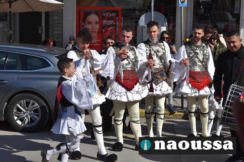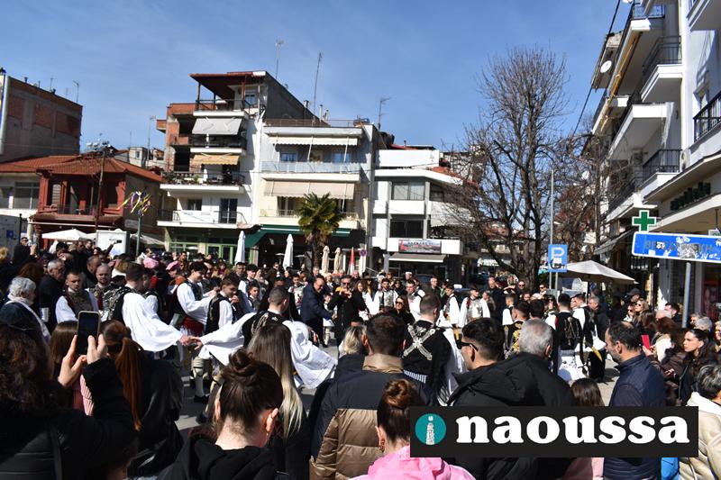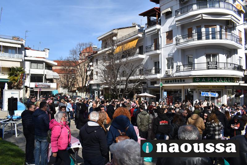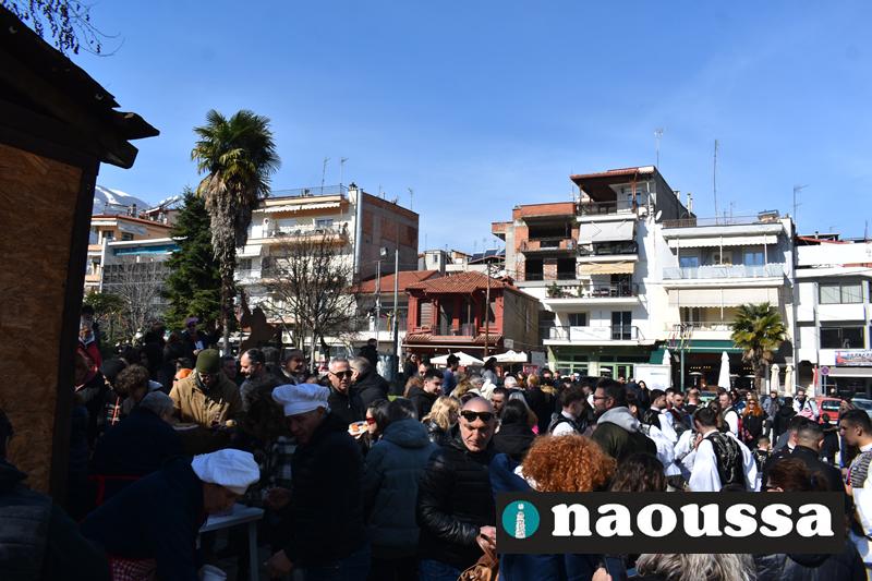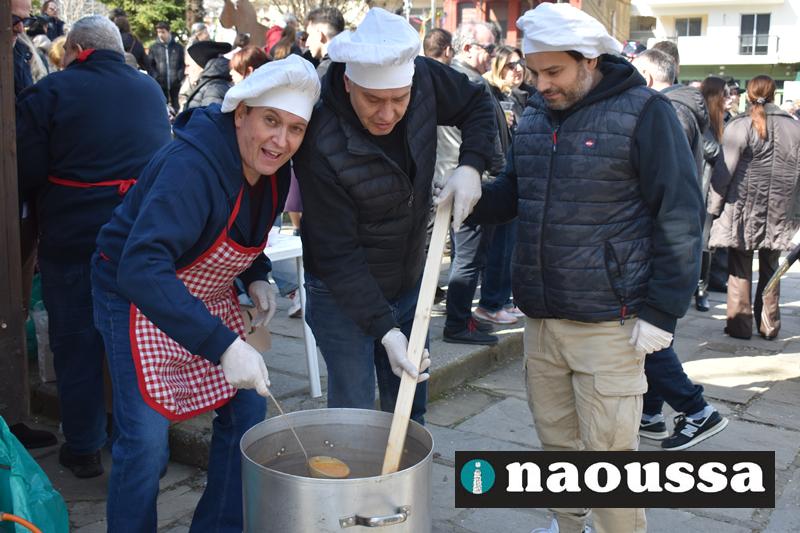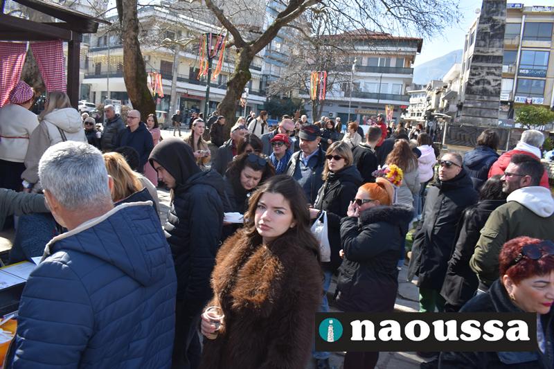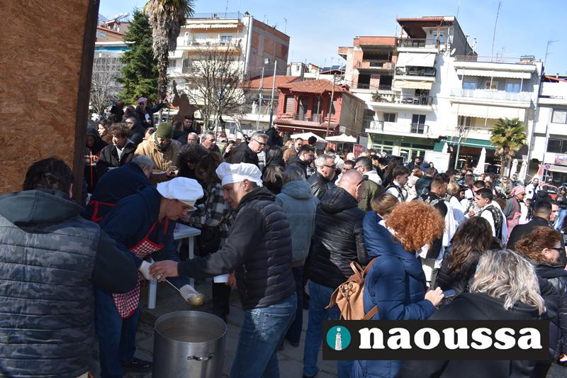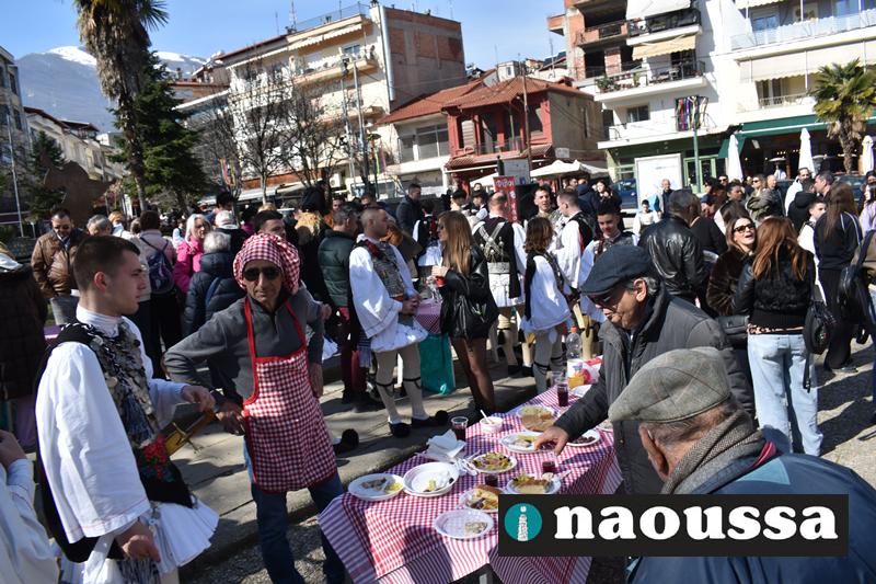 Σαρακοστιανά, λαγάνες, κόκκινο κρασί και φασολάδα προσέφεραν από το πρωί της Δευτέρας οι Φίλοι Καρναβαλιού Νάουσας στον κόσμο στην πλατεία Καρατάσου.