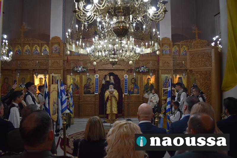 Παρουσία πλήθος κόσμου τελέσθηκε η Πανηγυρική Αρχιερατική Θεία Λειτουργία, προεξάρχοντος του Σεβασμιωτάτου Μητροπολίτου μας κ. Παντελεήμονος το πρωί της Κυριακής στον Ιερό Ναό Αγίου Δημητρίου Ναούσης.