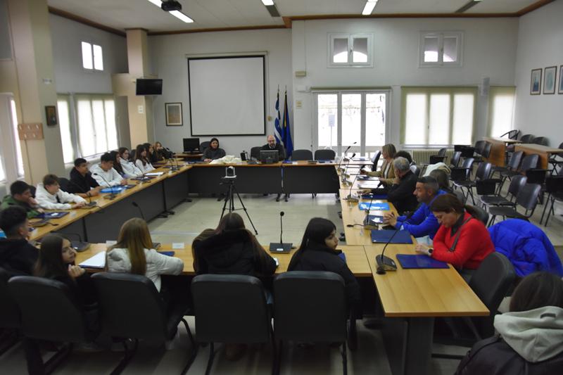 Τους μαθητές υποδέχθηκαν στο Δημαρχείο η Αντιδήμαρχος Παιδείας, Νεολαίας και Αθλητισμού κα Χριστίνα Ράλλη και ο Γενικός Γραμματέας του Δήμου Νάουσας κ. Σταύρος Βαλσαμίδης, οι οποίοι τους καλωσόρισαν θερμά στην Ηρωική Πόλη της Νάουσας.