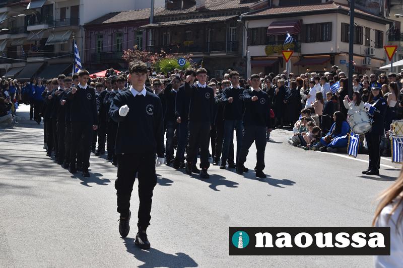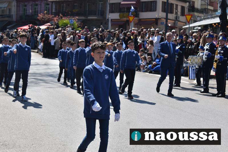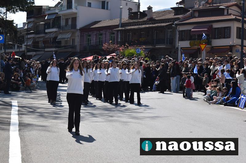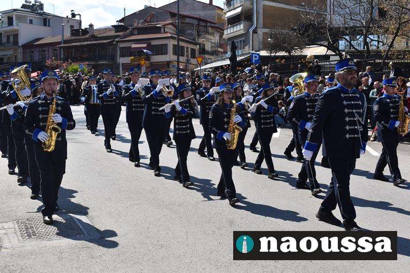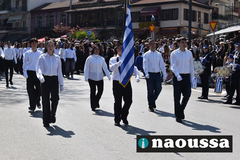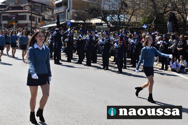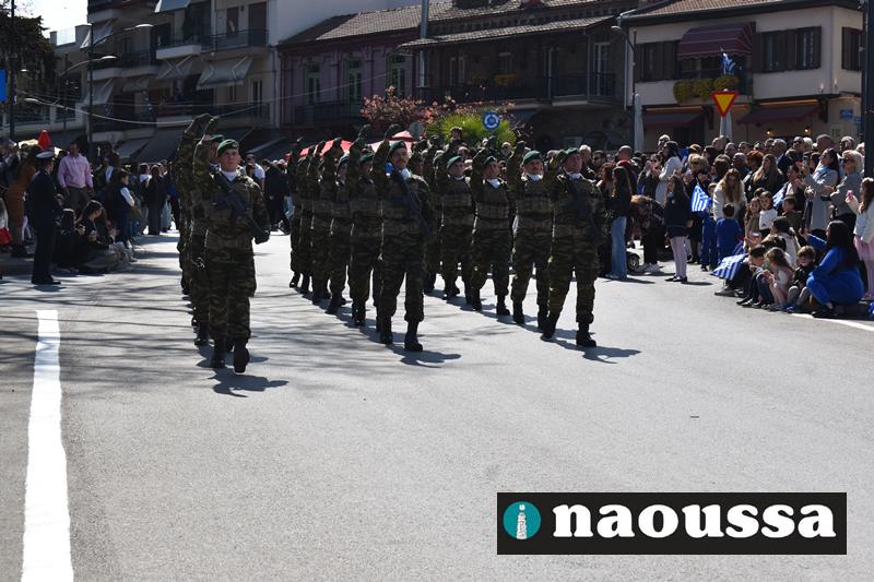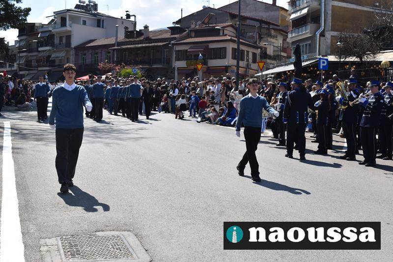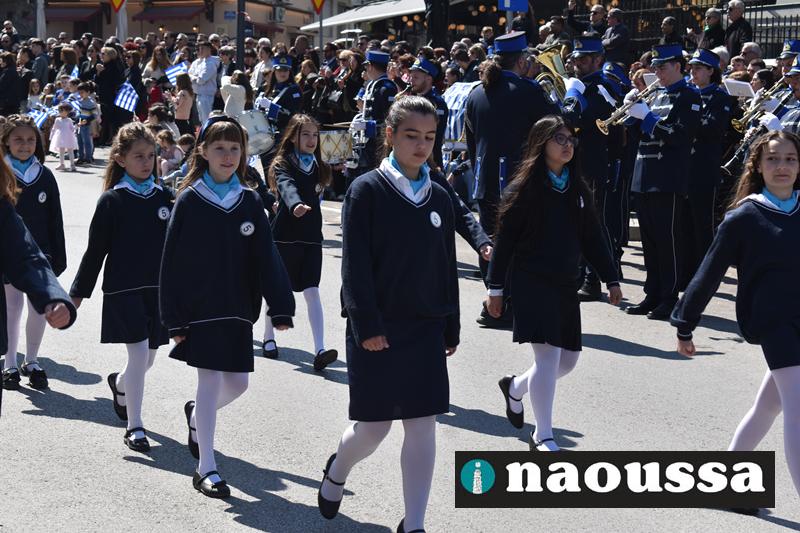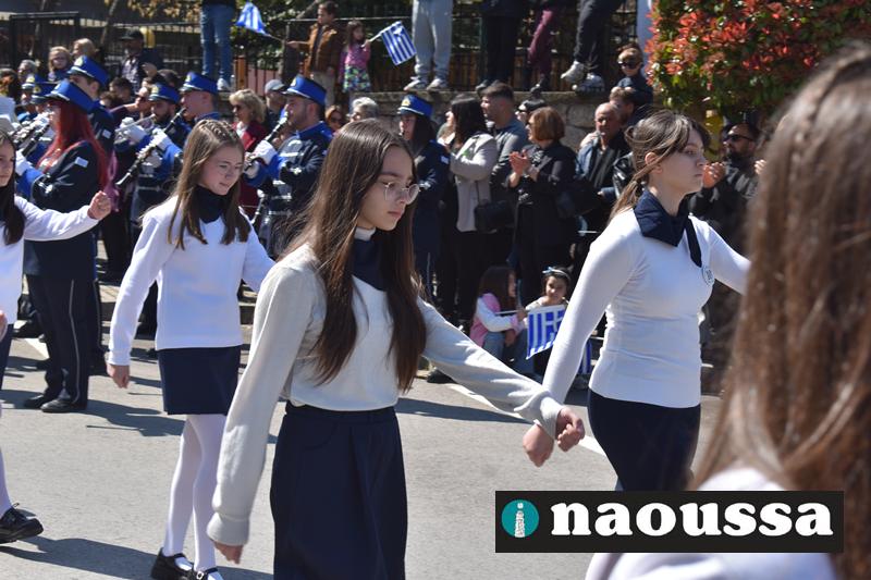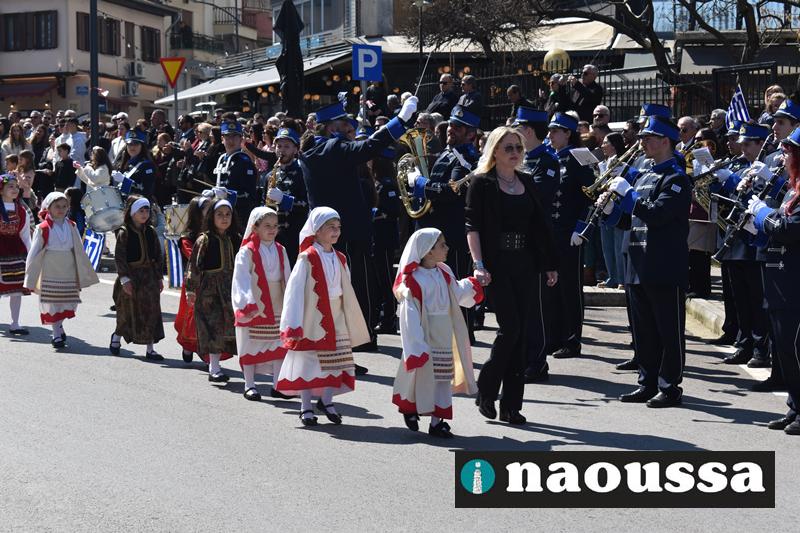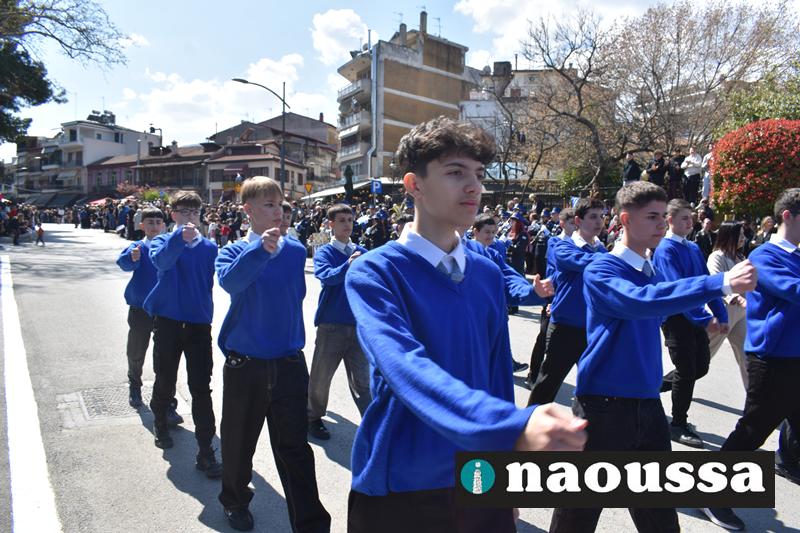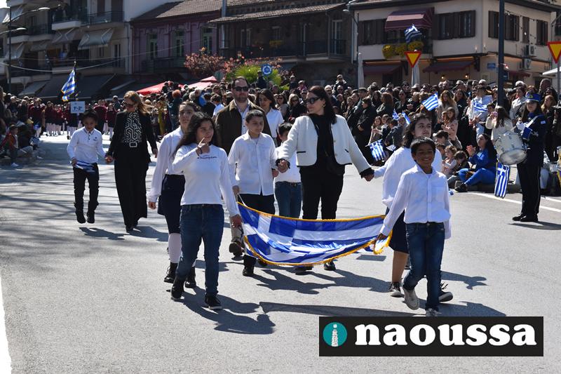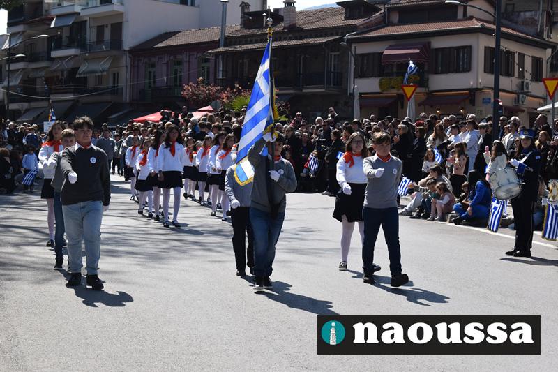 Τα μέλη των πολιτιστικών, οι μαθητές των σχολείων, οι σπουδαστές της σχολής Αστυφυλάκων και άνδρες της Β΄Μοίρας Καταδρομών παρήλασαν καταχειροκροτούμενοι από τους κατοίκους της Νάουσας.