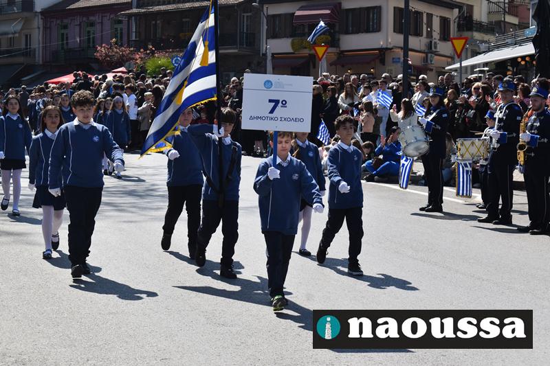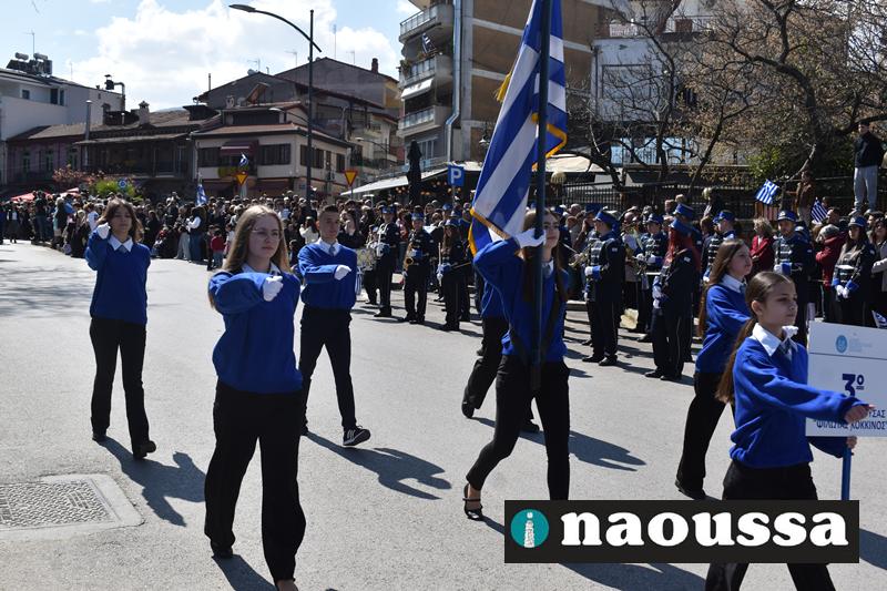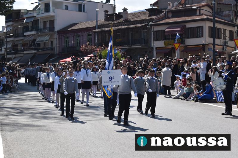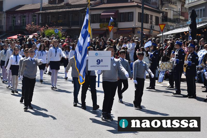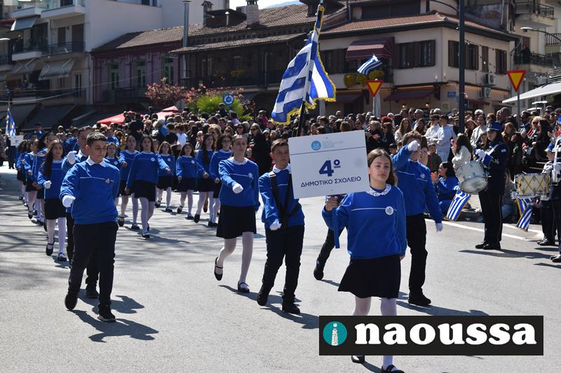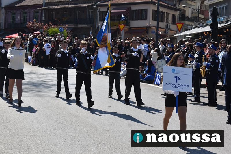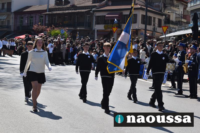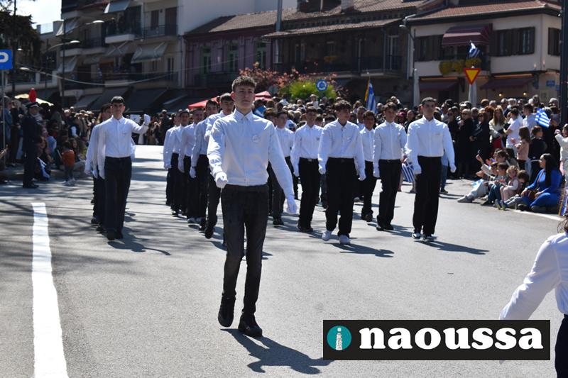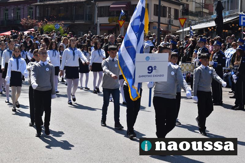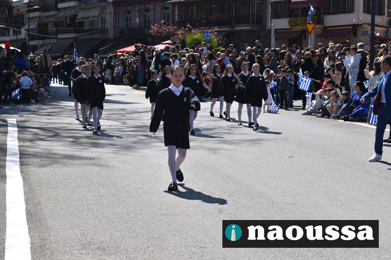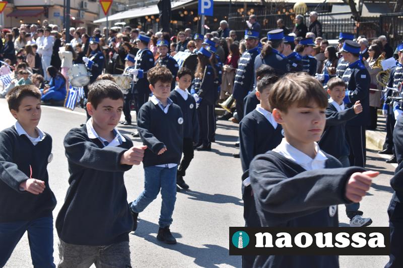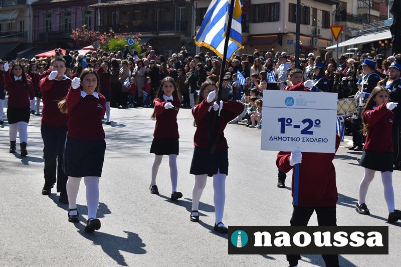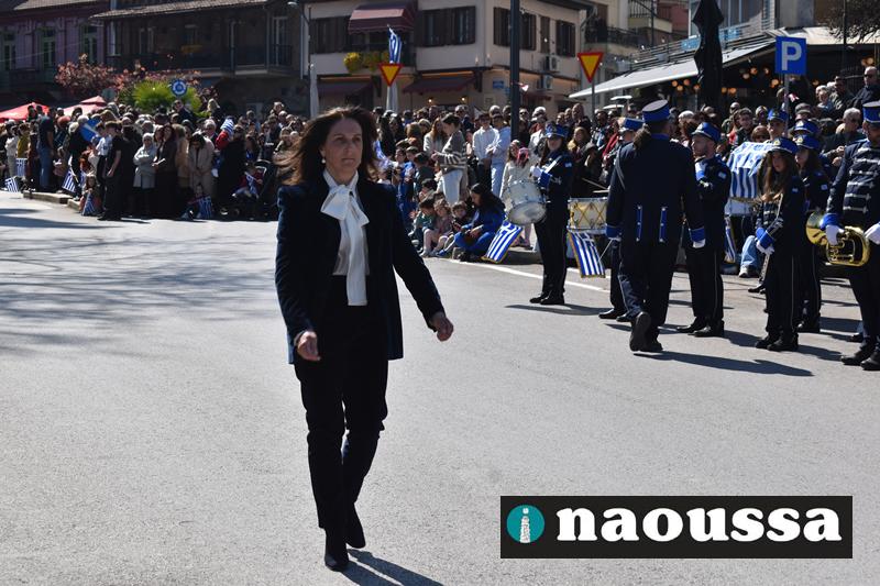 Τα μέλη των πολιτιστικών, οι μαθητές των σχολείων, οι σπουδαστές της σχολής Αστυφυλάκων και άνδρες της Β΄Μοίρας Καταδρομών παρήλασαν καταχειροκροτούμενοι από τους κατοίκους της Νάουσας.