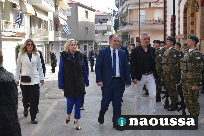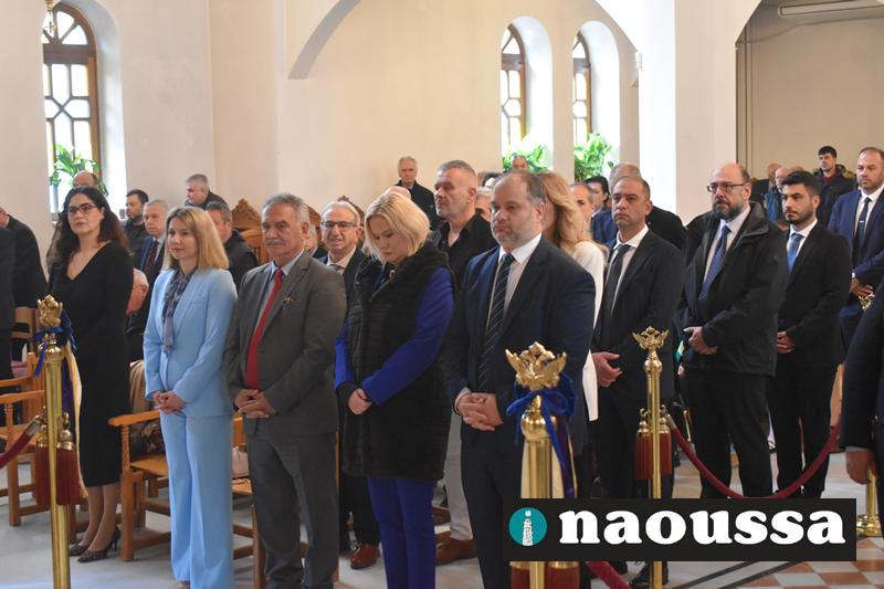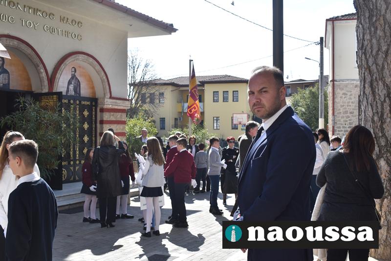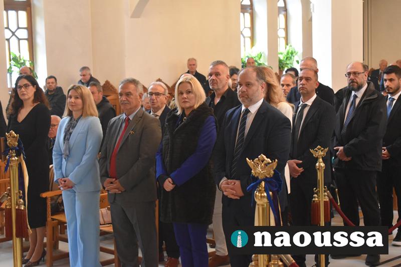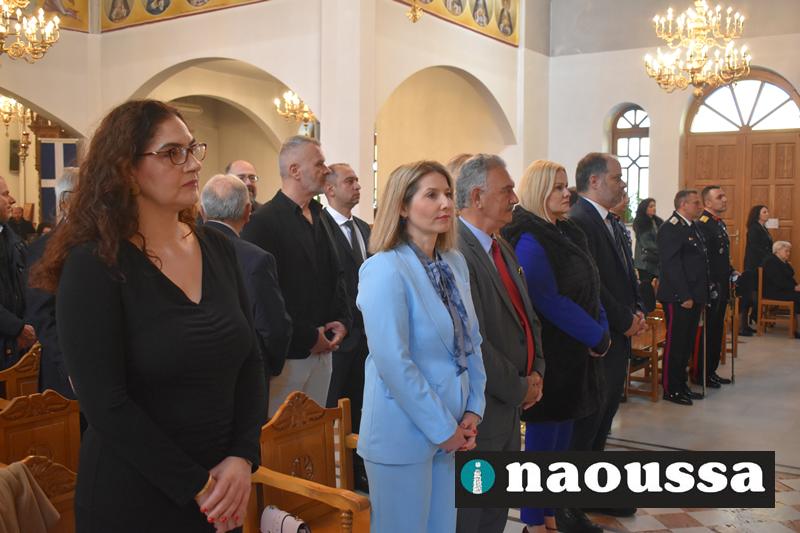 Στον Μητροπολιτικό Νάουσας παρευρέθηκαν οι πολιτική και στρατιωτική ηγεσία καθώς αντιπροσωπείες όλων των Σχολείων με τις Σημαίες.