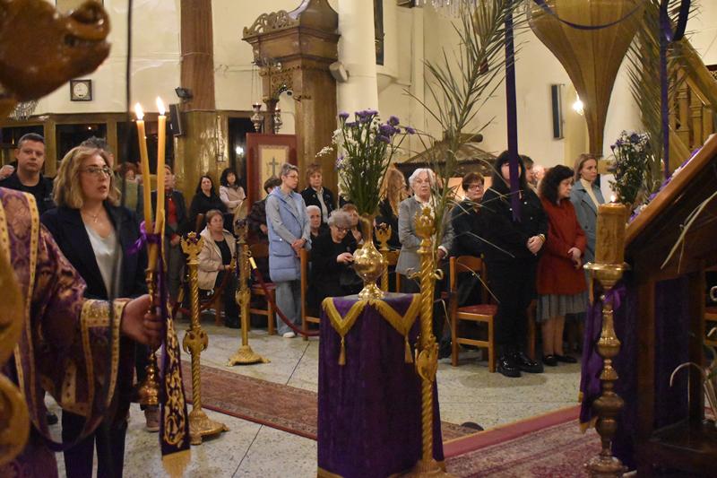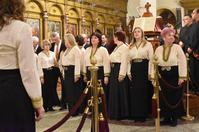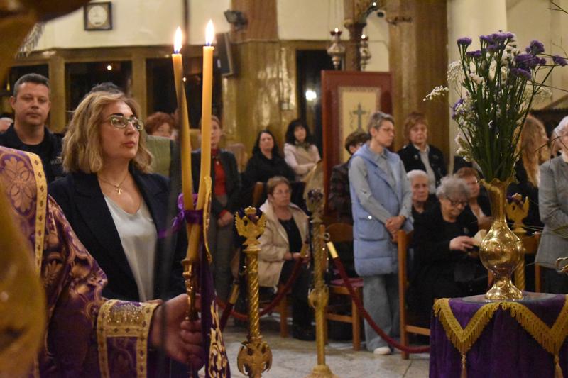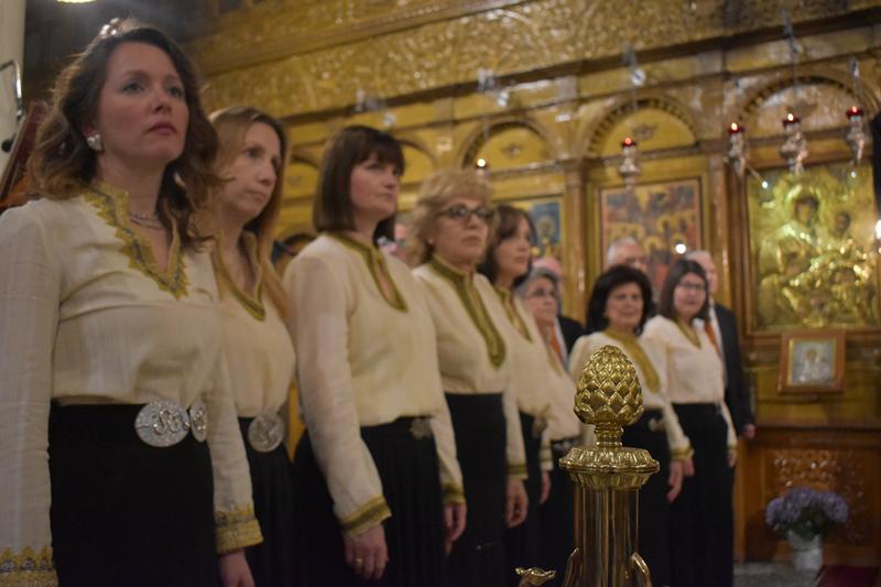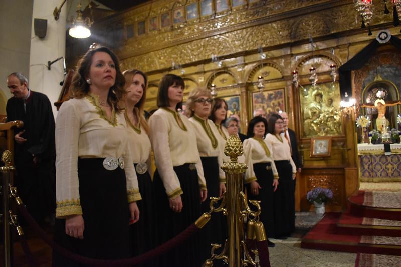 Στον κατάμεστο από πιστούς Ιερό Ναό Κοιμήσεως της Θεοτόκου (Παναγία) έψαλαν το Τροπάριο Κασσιανής τα μέλη της χορωδίας του Μουσικού Σωματείου «ΩΔΕΙΟ ΝΑΟΥΣΗΣ».
