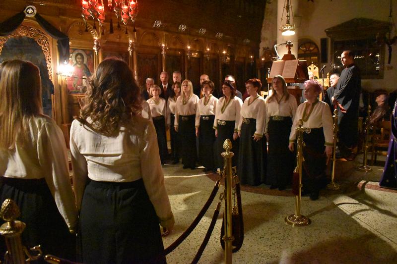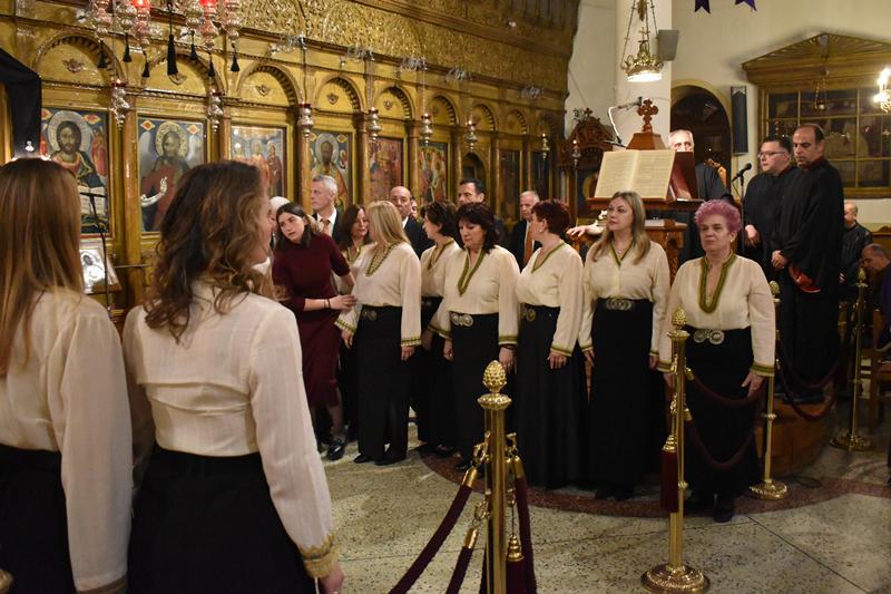 Συνεχίζοντας την παράδοση δεκαετιών, η χορωδία του Μουσικού Σωματείου «ΩΔΕΙΟ ΝΑΟΥΣΗΣ» έψαλε το τροπάριο της Κασσιανής σε εναρμόνιση και διεύθυνση του μαέστρου Δημήτρη Παρόλα.