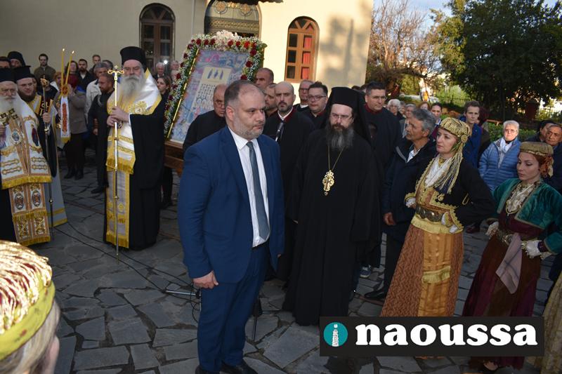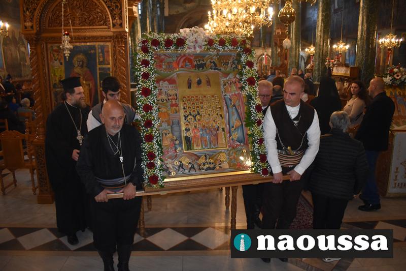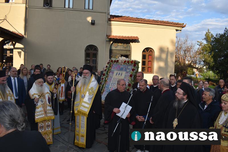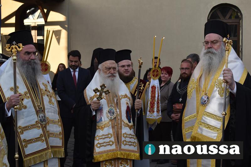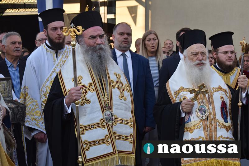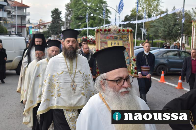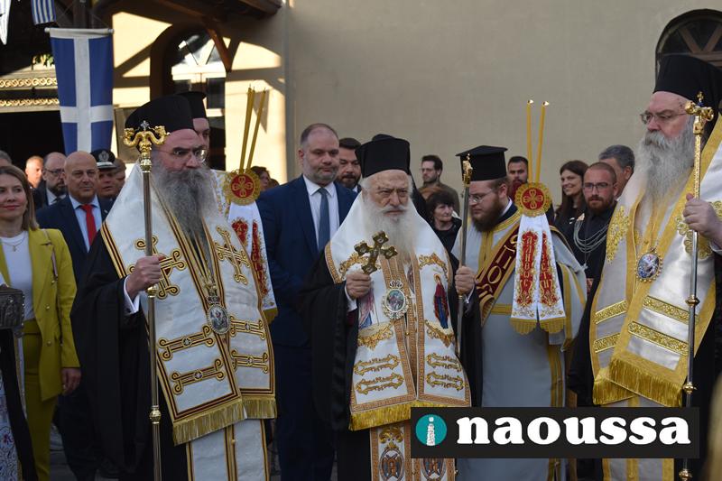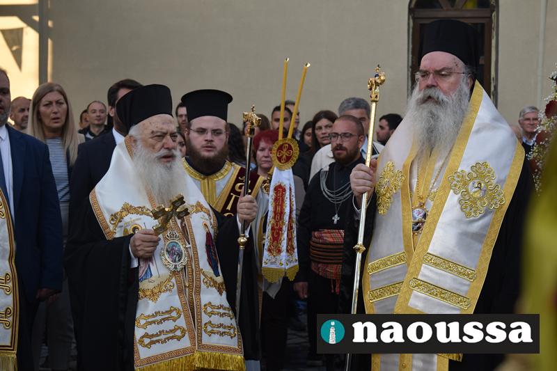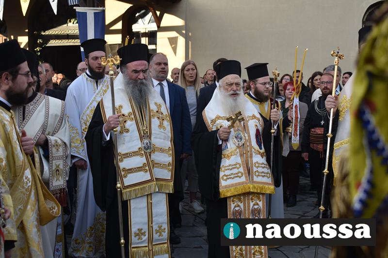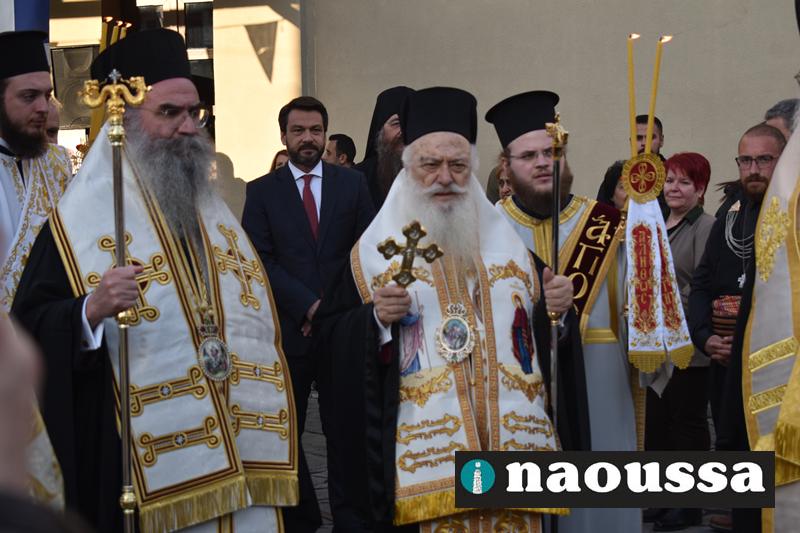 Αρχικά παρουσία πλήθος κόσμου στον Ιερό Ναό του Αγίου Γεωργίου Ναούσης τελέσθηκε ο Μέγας Πανηγυρικός Πολυαρχιερατικός Εσπερινός.