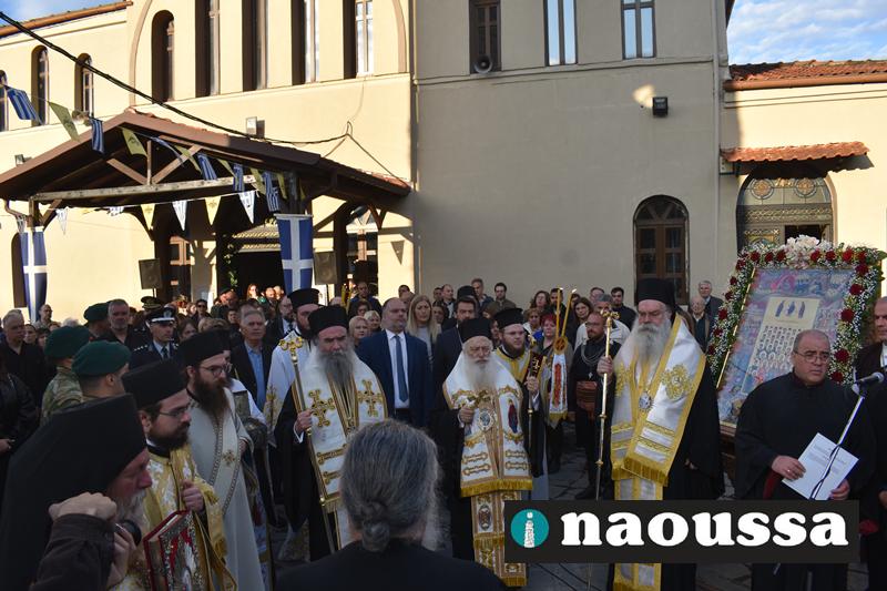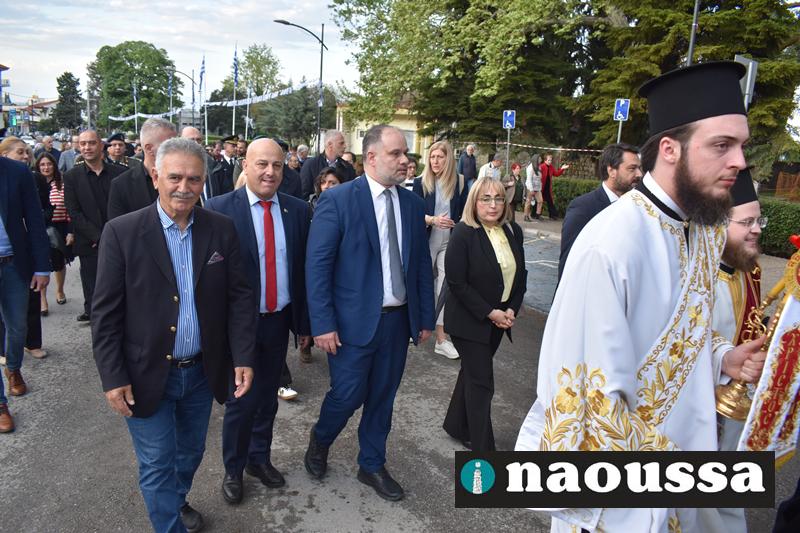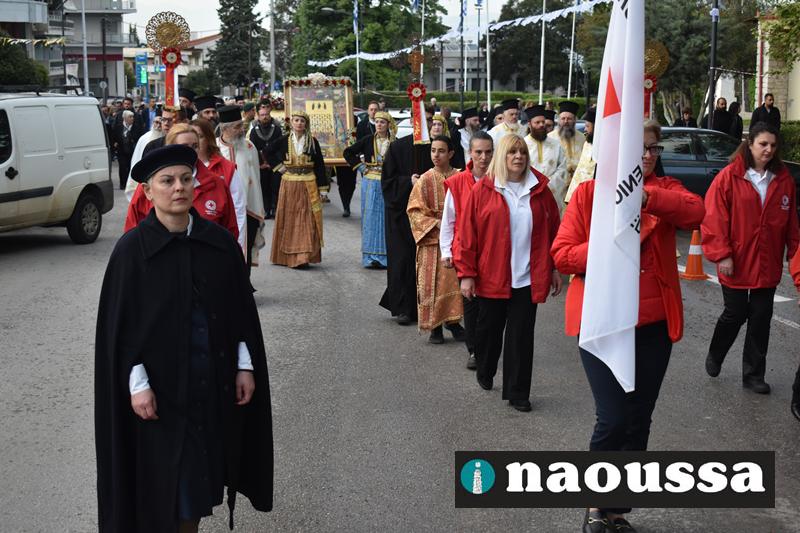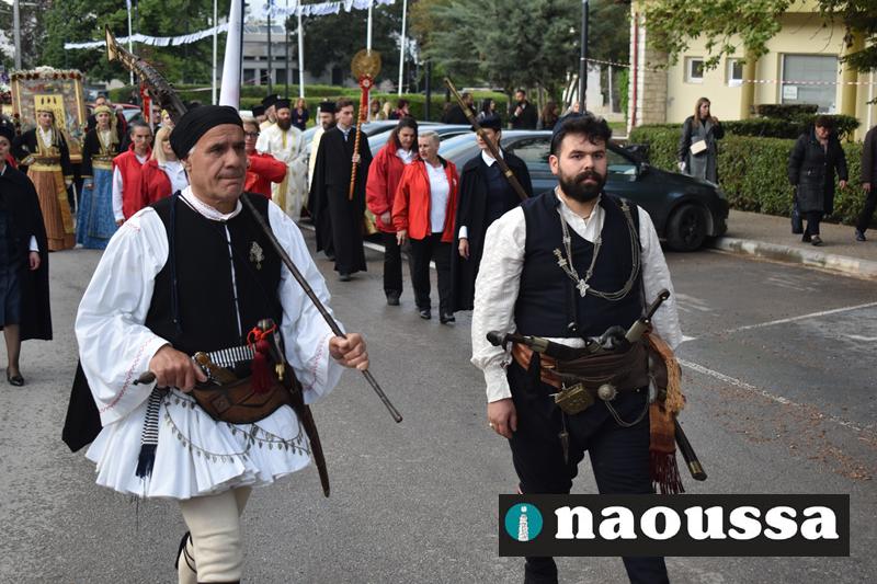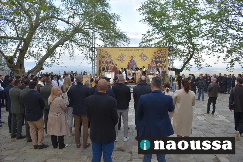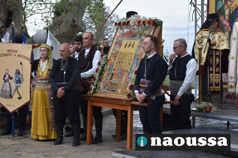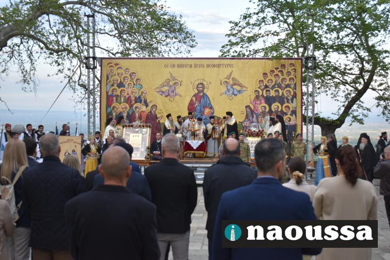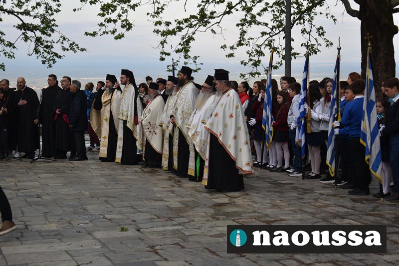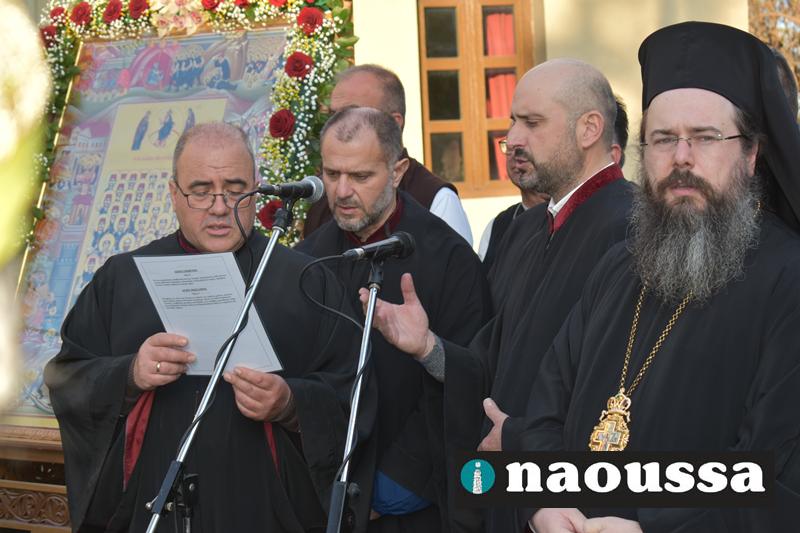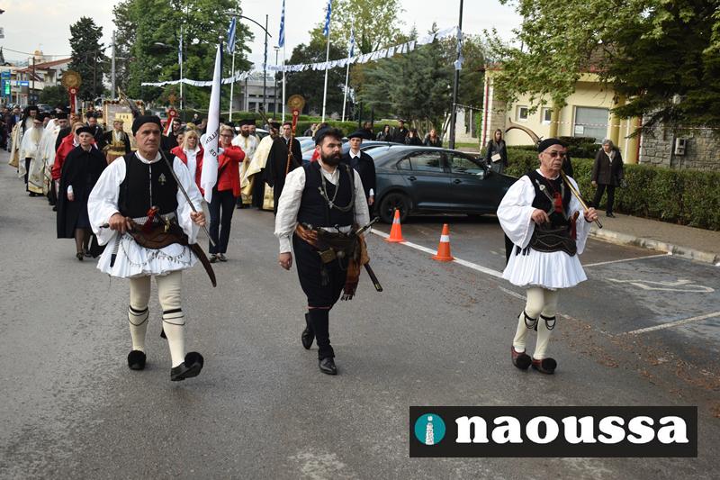 Στην συνέχεια πραγματοποιήθηκε πάνδημη Λιτανεία προς τον Χώρο Μαρτυρίου (Κιόσκι), από συλλόγους, μαθητές και φορείς της Νάουσας όπου τελέσθηκε αρτοκλασία και θα εκφωνήθηκε εόρτιο κήρυγµα.