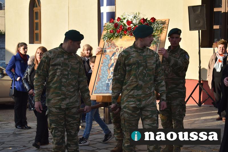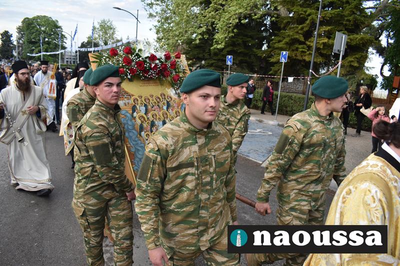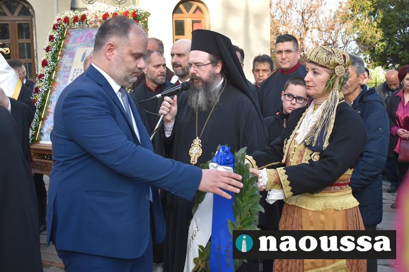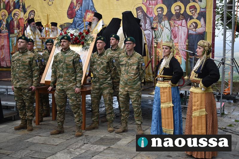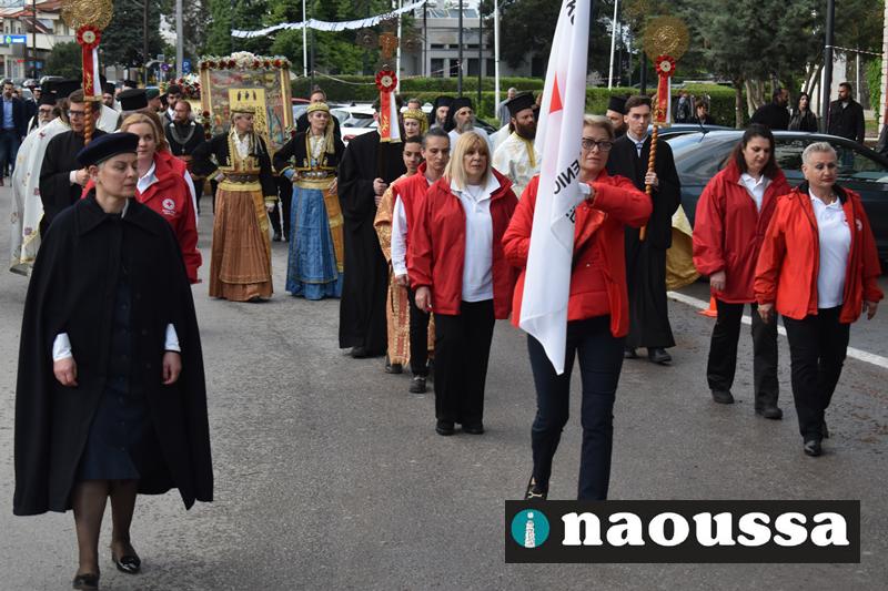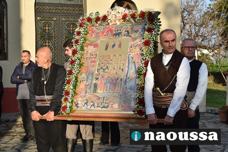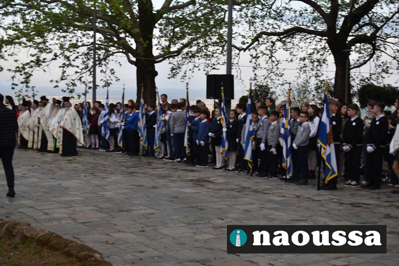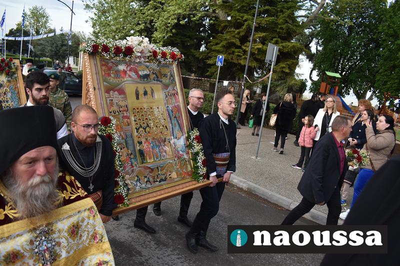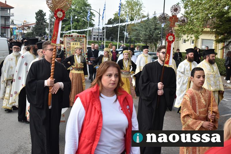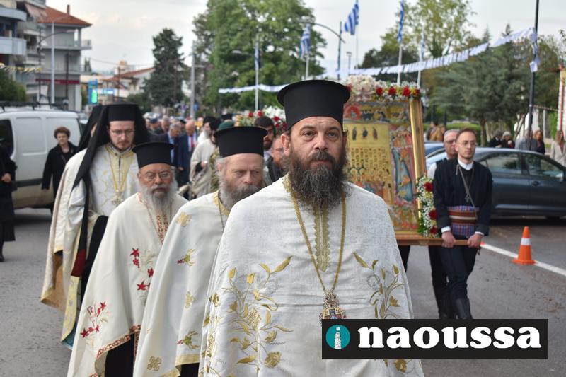 Στην συνέχεια πραγματοποιήθηκε πάνδημη Λιτανεία προς τον Χώρο Μαρτυρίου (Κιόσκι), από συλλόγους, μαθητές και φορείς της Νάουσας όπου τελέσθηκε αρτοκλασία και θα εκφωνήθηκε εόρτιο κήρυγµα.